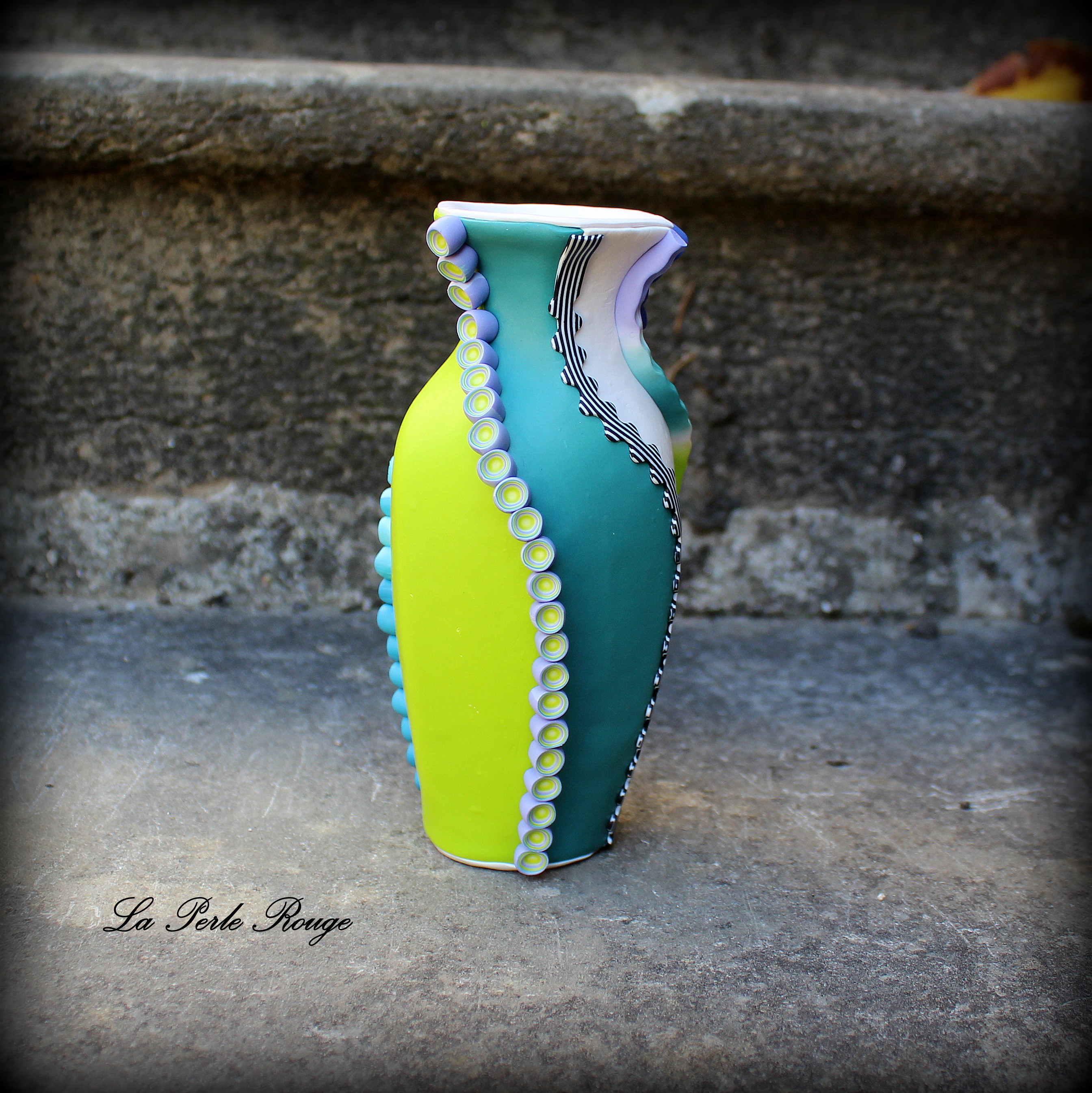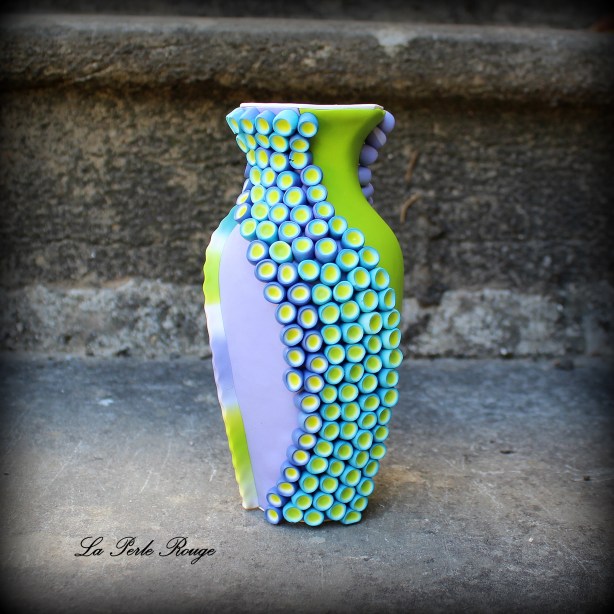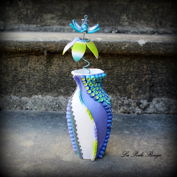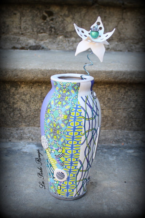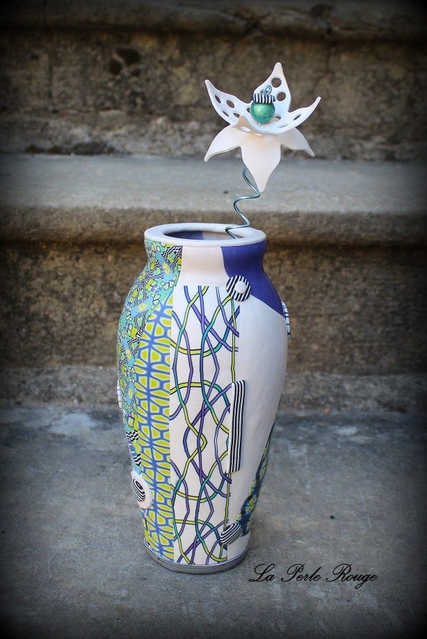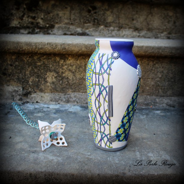 Cela dit, les petites canes dégradées que j’ai placées au col du vase m’ont beaucoup plu. C’est pourquoi, dans la lancée, j’ai réalisé une pièce qui me plait BEAUCOUP énormément plus. À vous de me confirmer cela :