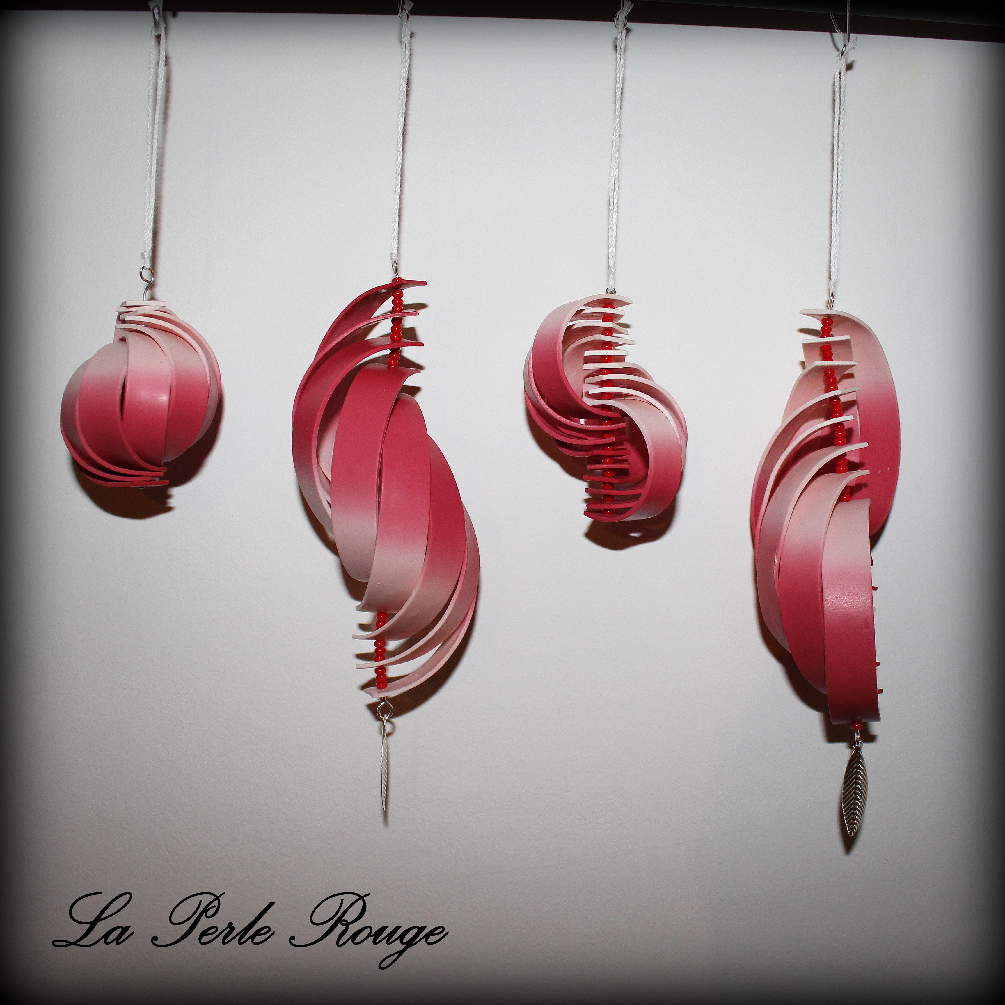 J’avais en tête un second modèle de boules de Noël… (pour autant qu’on puisse appeler ça des boules… appelons ça des ornements à suspendre) directement inspiré de mes dernières fleurs sur mes vases et ma foi… je les aime beaucoup !