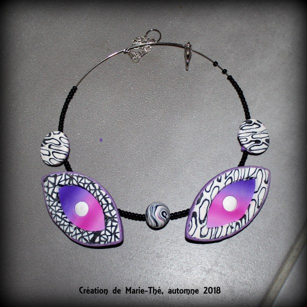 Peinture, couture et travail de la pâte polymère, tout a été exploité de façons équilibrées et très différentes selon les pièces réalisées. C’était très intéressant de constater la traduction des différentes identités présentes à travers leur approche de leur création.