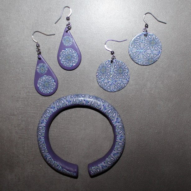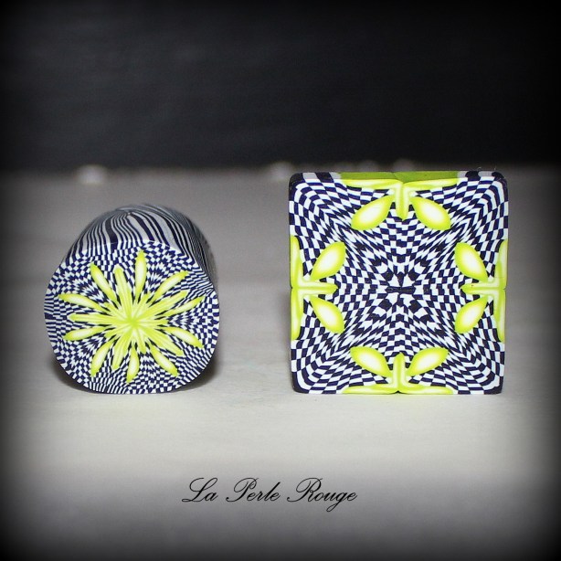 Il est temps à présent de vous montrer quelques unes de mes pièces (et ben… on a failli attendre, ça fait des semaines !) Le temps qui m’est imparti dans mon atelier demeure irrégulier mais je suis parvenue à utiliser un peu de mes canes kaléidoscopes improvisées à la fin de l’année dernière.