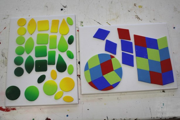 Les pièces vertes de la plaques de gauche appartiennent, quant à elles, à la dernière composition arc-en-ciellement coloré (si si, ça existe… ou alors ça devrait.)