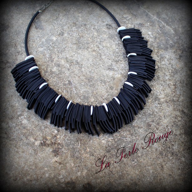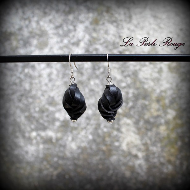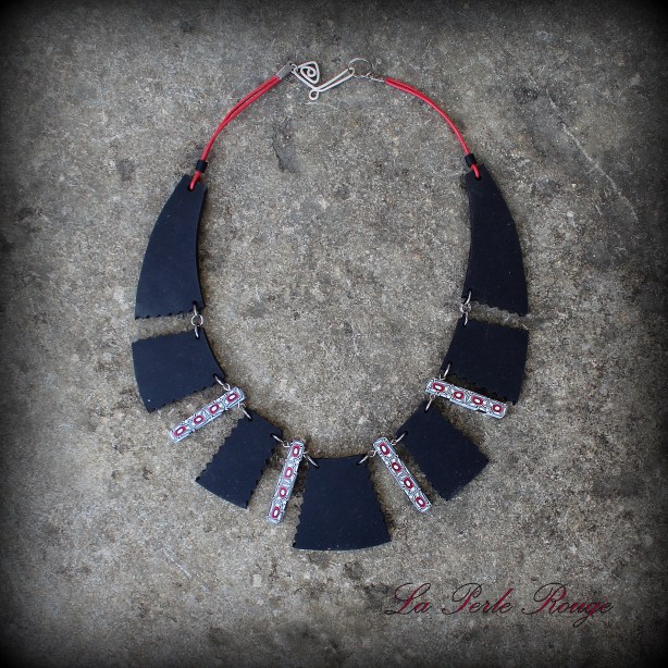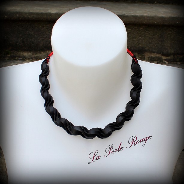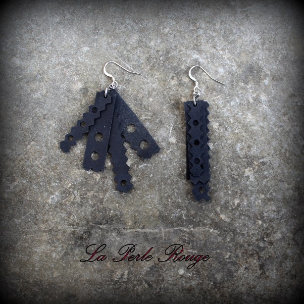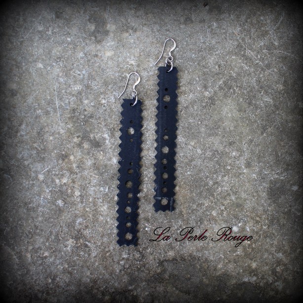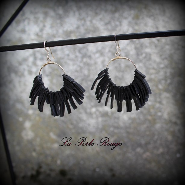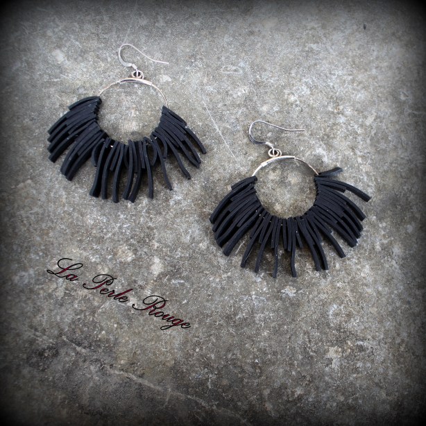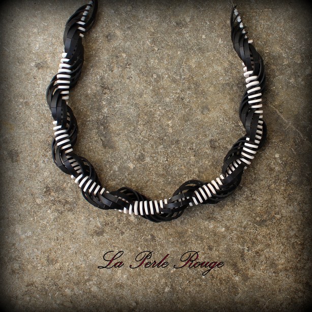 Allez, c’est partit ! je vous présente les tout premiers prototypes (y en’a t-il vraiment d’autres ?) de bijoux travaillés à partir de chambres à air recyclées :