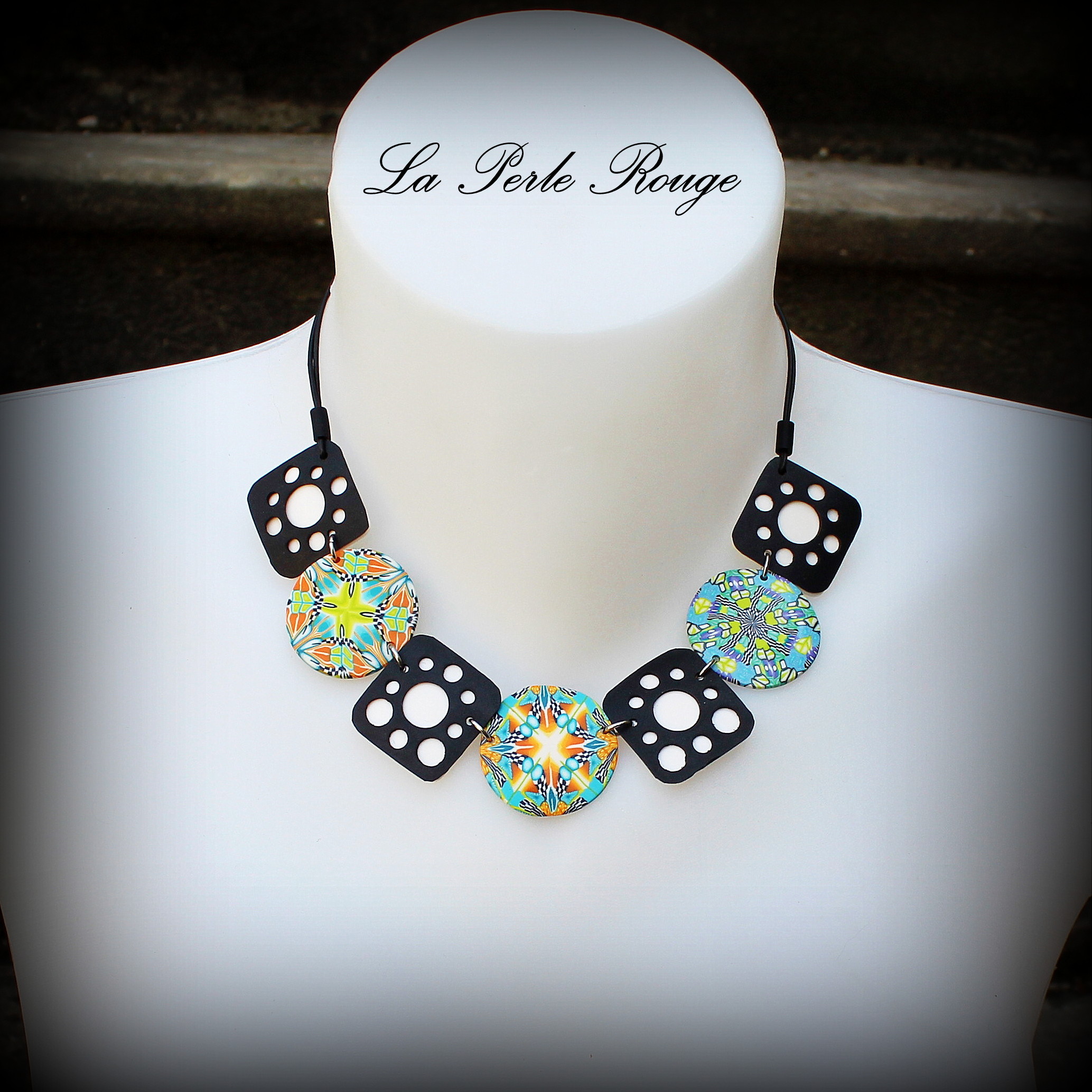 Et avec les disques découpés, j’ai testé un montage de boucles qui m’a inspiré pour l’avant-dernier collier de cet article.