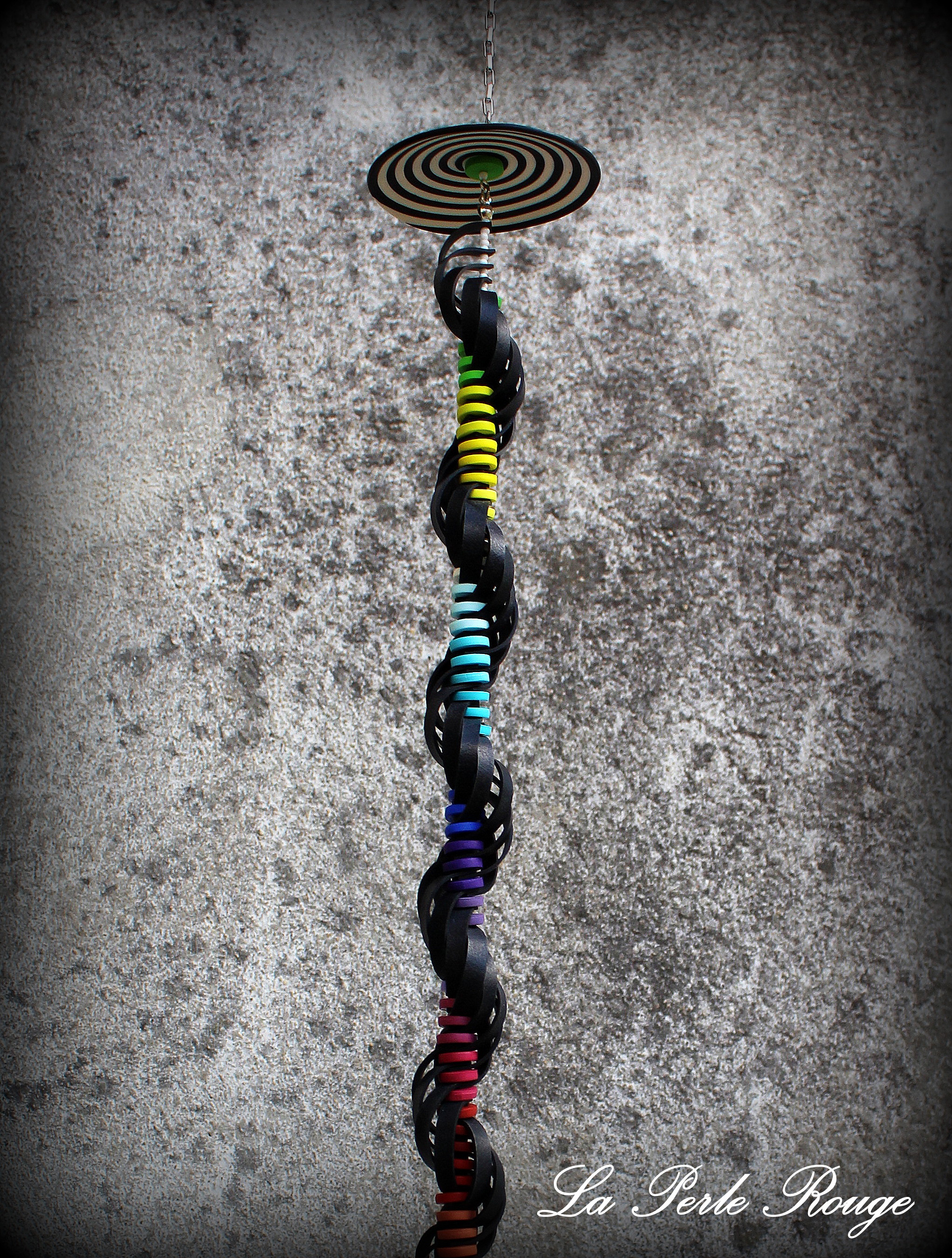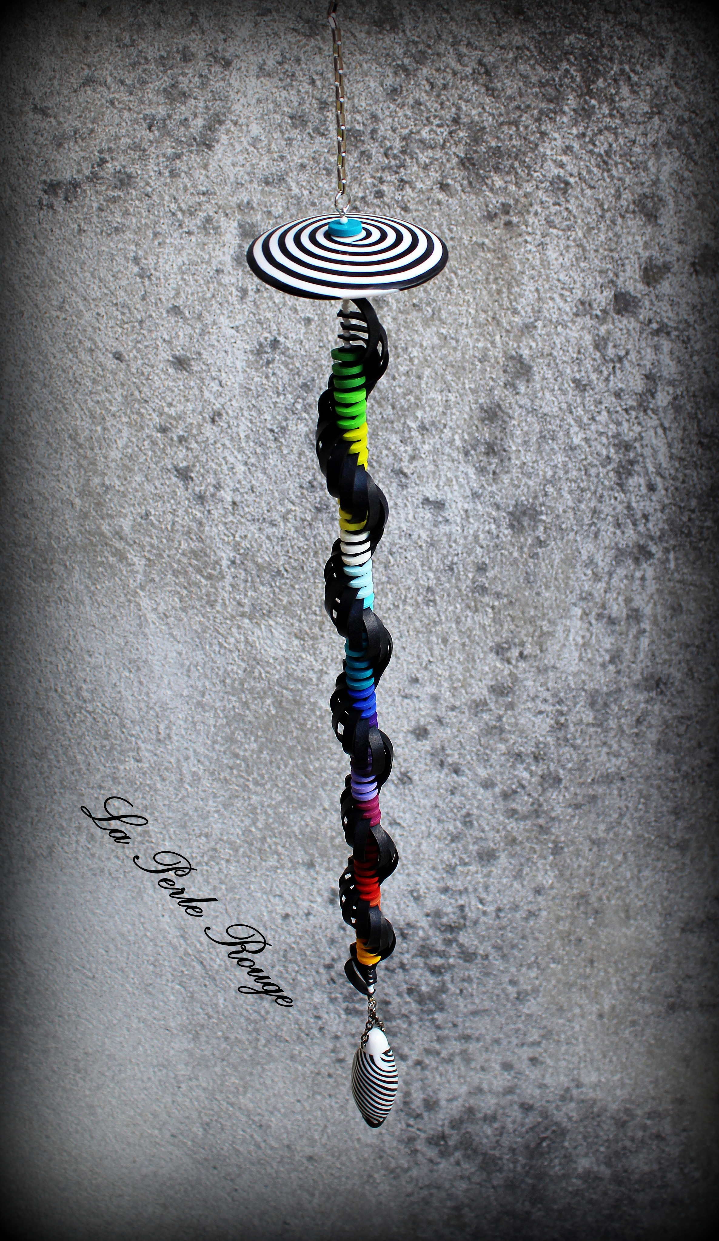 Trouvant que c’était, en tout cas de cette taille, un peu complexe à porter en collier, je l’ai décliné en suspension :