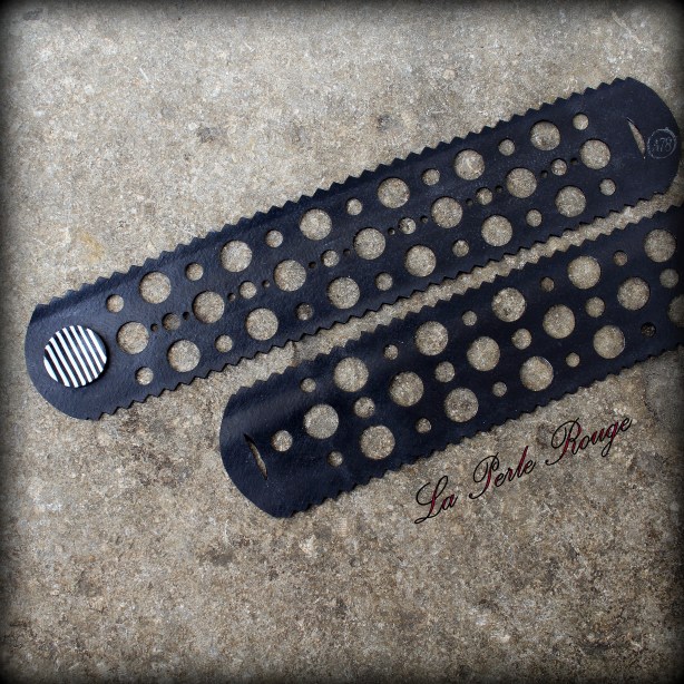 Mes emporte-pièces à frapper m’ont permis de réaliser des trous d’un diamètre un peu plus grand que je pouvais faire jusqu’à présent et j’ai donc réalisé quelques bracelets manchettes très confortables à porter :