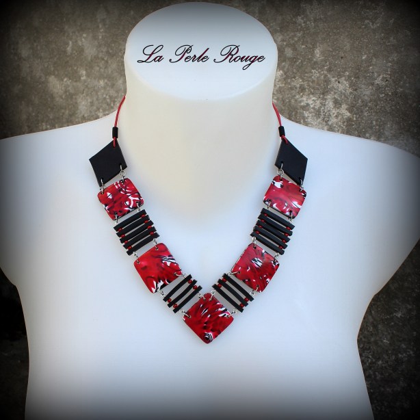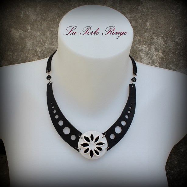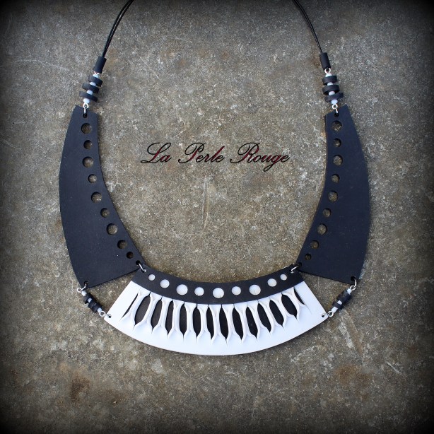 Alors… j’ai une remarque à faire… je ne sais pas trop quelles sont les mensurations de mon modèle à la plastique très…. plastique, mais j’ai l’impression qu’avant de perdre ses bras, cette créature a un peu forcé la musculation de ses trapèzes… et que ça bien développé également ses clavicules… bref, les colliers ne tombent pas tout à fait sur ce buste comme ils le font sur moi lorsque je les essaie avant de fixer les fermoirs… Suis-je la seule à avoir ce petit soucis ? Ou bien sont-ce mes propres clavicules qui ne tournent pas rond ?