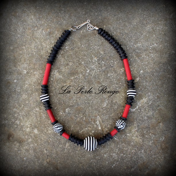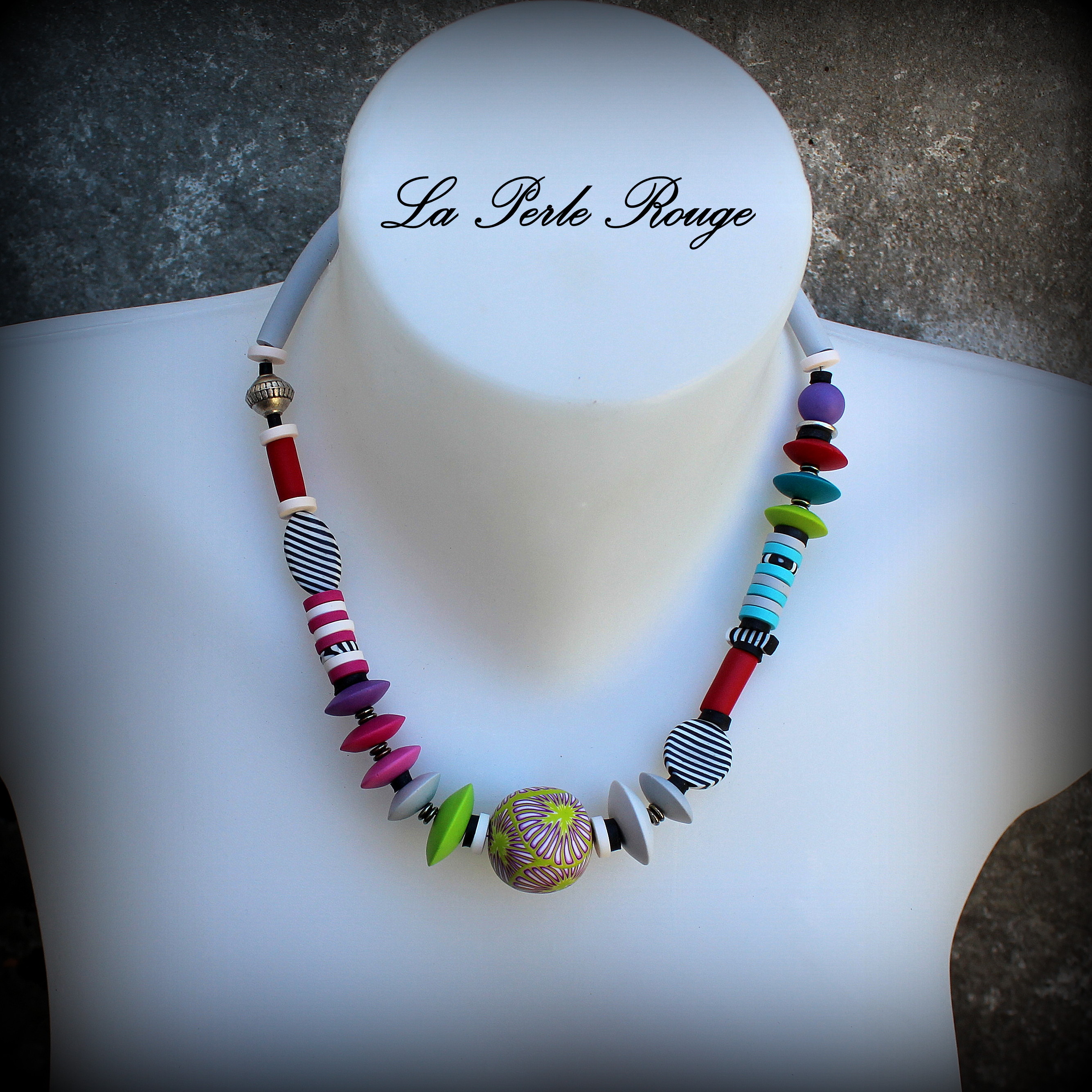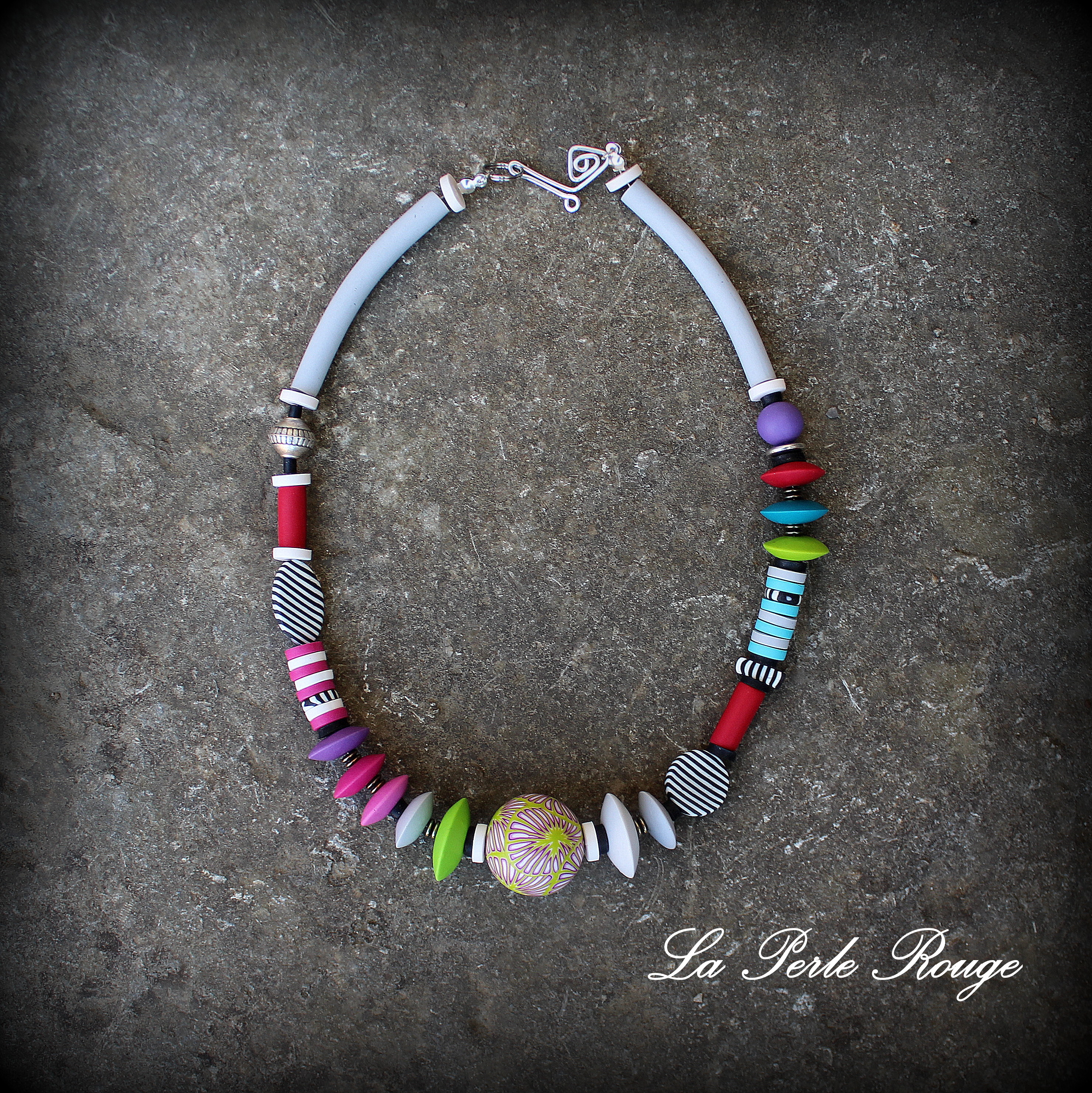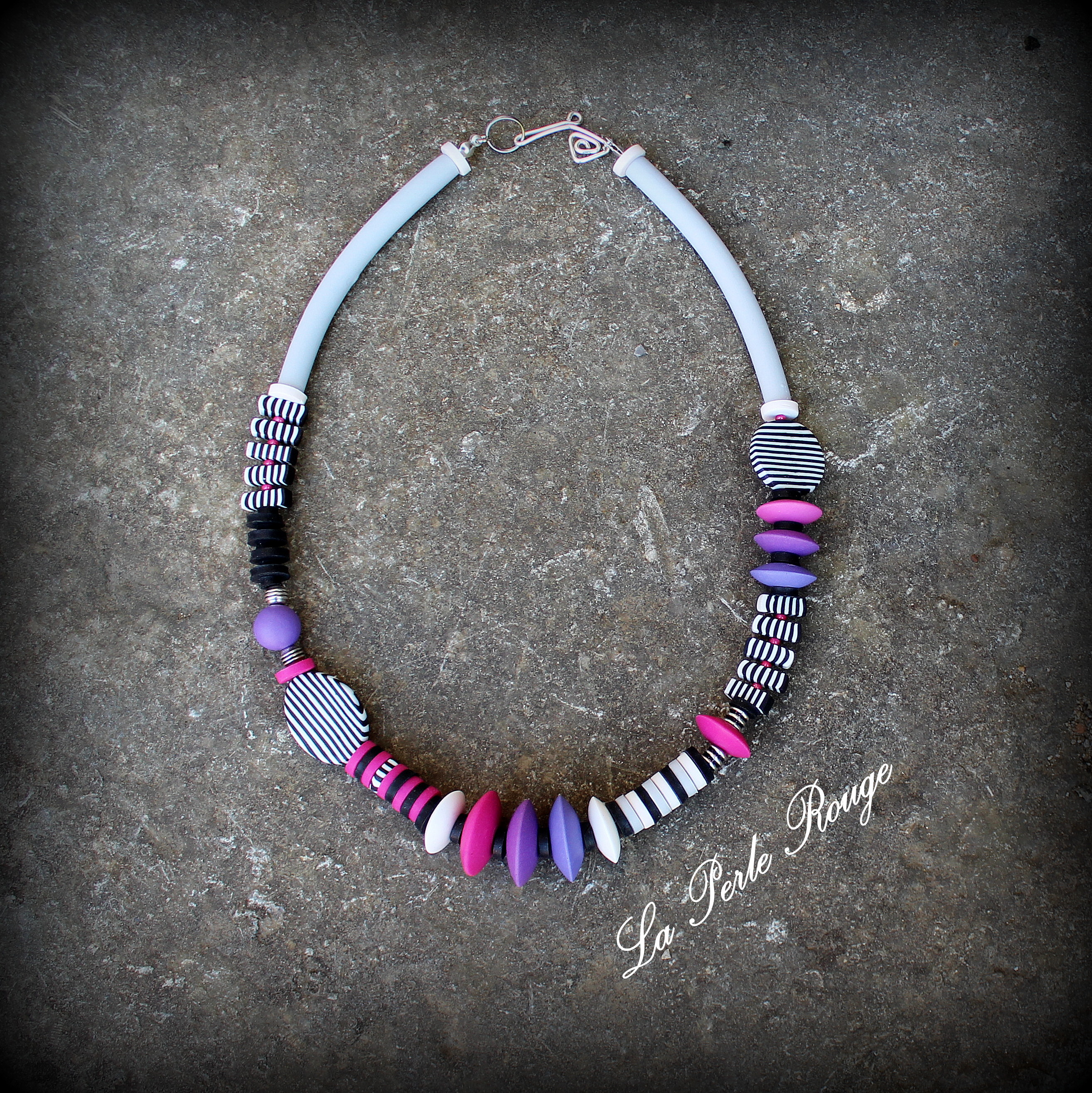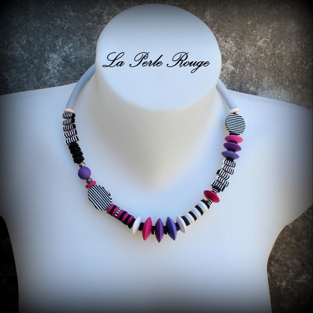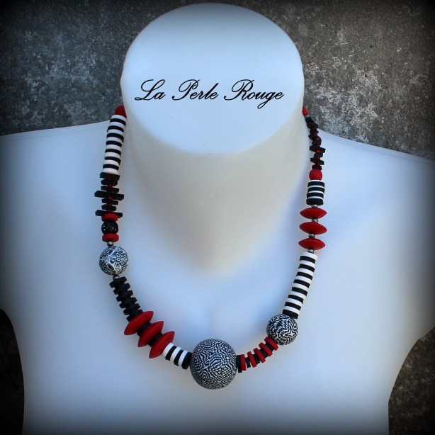 Les grosses perles centrales de ces colliers sont très légères car elles possèdent (et c’est là qu’on retrouve toute ma poésie) un cœur de papier.