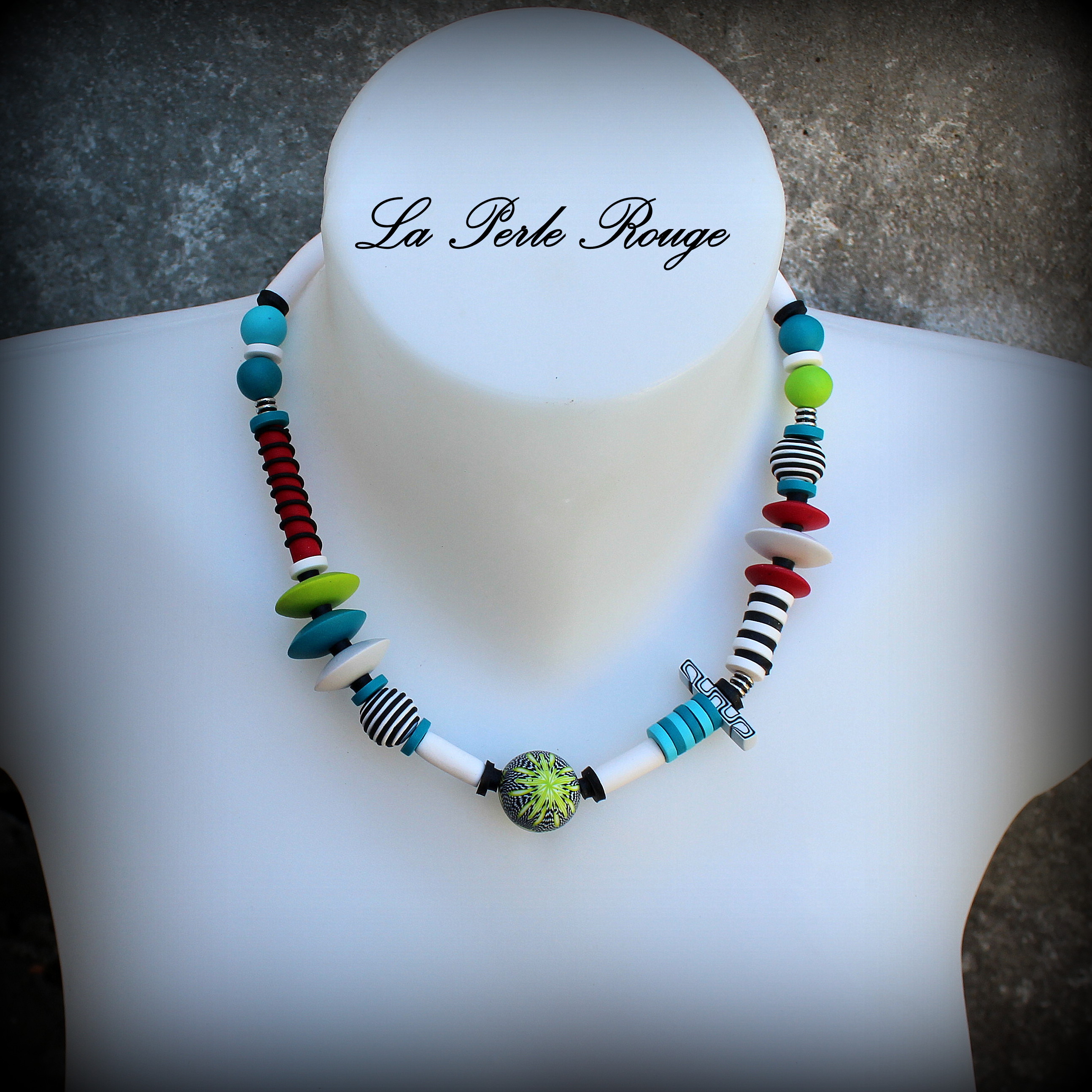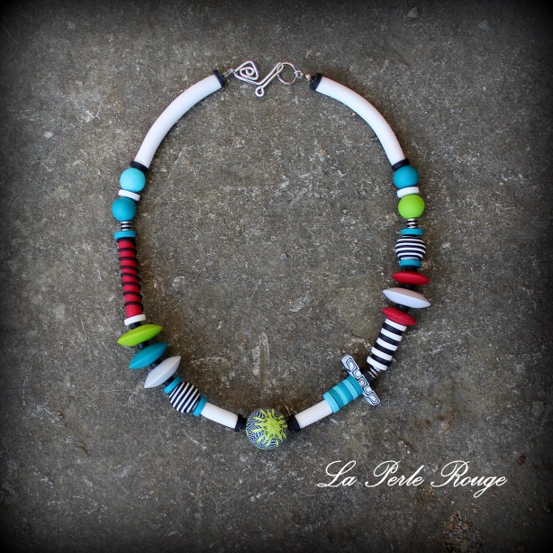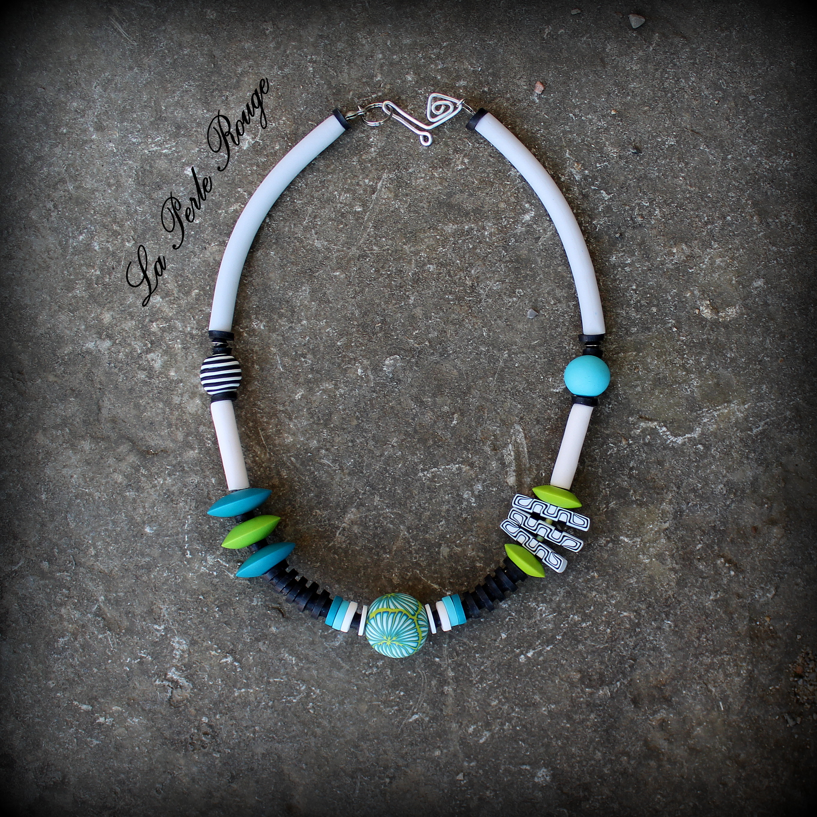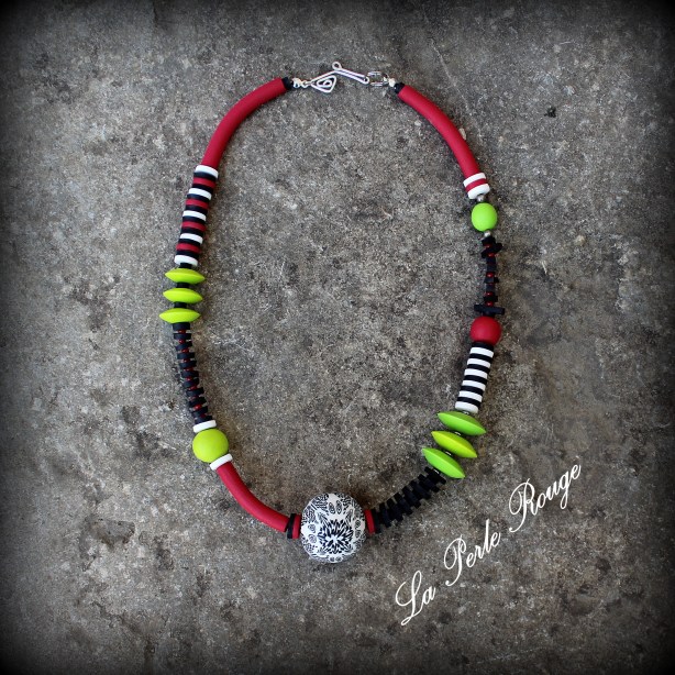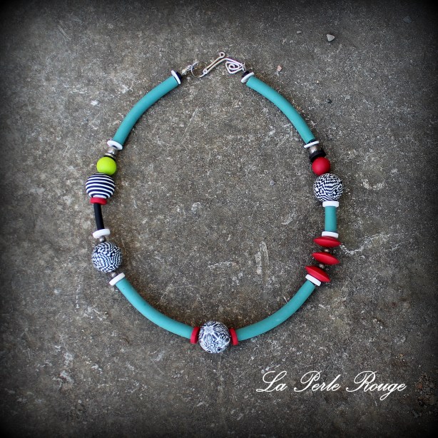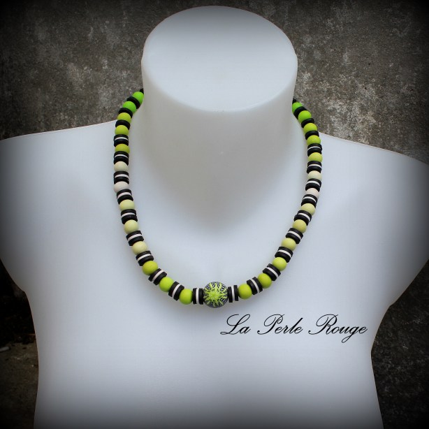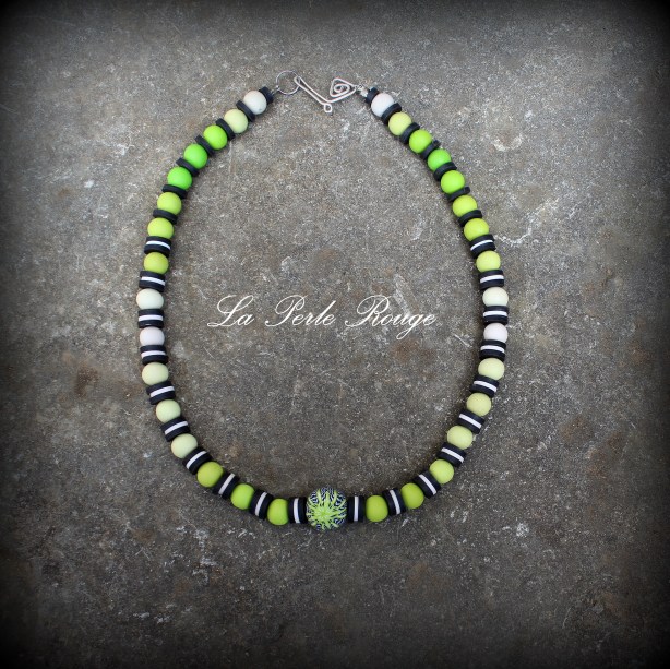 Le collier suivant est peut-être mon préféré de la série tant j’apprécie la lumière qu’apporte ce vert sur-vitaminé.