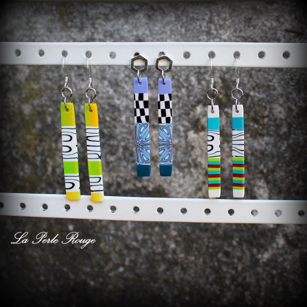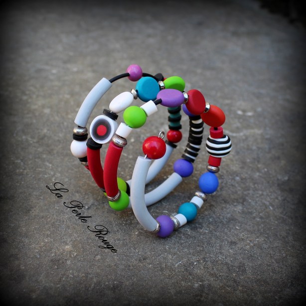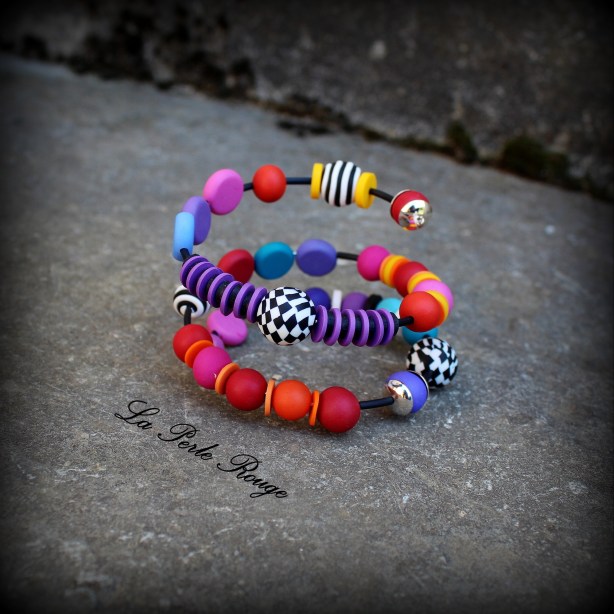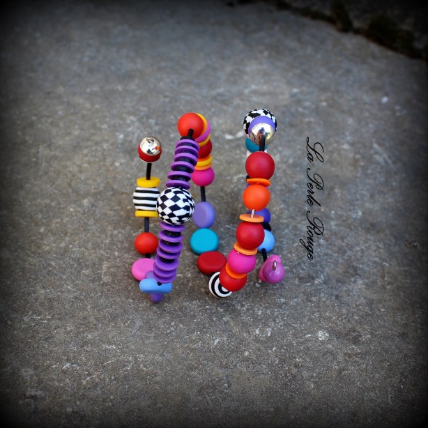 Il fallait bien quelques bracelets, tout de même ! Donc voici trois modèles assorties à la série asymétrique équilibrée du dernier article :