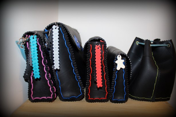 Les réseaux sociaux peuvent être sources de grandes misères et de folles galères personnelles mais ils peuvent également se révéler extrêmement efficaces pour une petite entreprise. Après avoir donc lancé à mes contacts un message de recherche de chambre à air (usées) à récupérer dans ma région, je me suis retrouvée en quelques heures à peine avec tout un tas de solutions proches de chez moi. J’ai déjà effectué deux  récupération de mon incongrue matière première et je ne compte pas m’arrêter là. Merci donc à celles et ceux qui m’ont orientée vers ces poubelles de trésors, à moi de vous montrer aujourd’hui ce qu’en ai déjà fait.