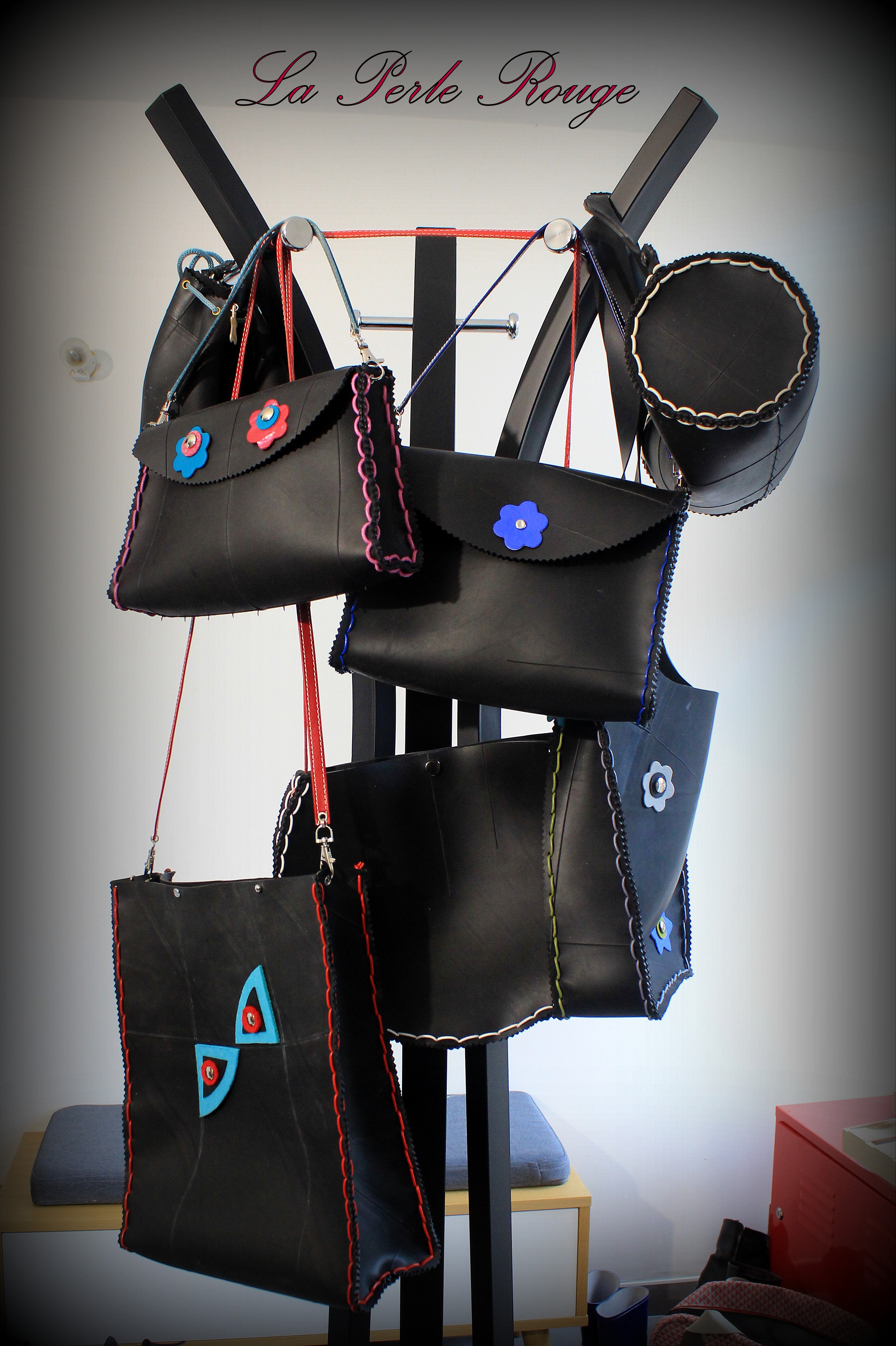 Les réseaux sociaux peuvent être sources de grandes misères et de folles galères personnelles mais ils peuvent également se révéler extrêmement efficaces pour une petite entreprise. Après avoir donc lancé à mes contacts un message de recherche de chambre à air (usées) à récupérer dans ma région, je me suis retrouvée en quelques heures à peine avec tout un tas de solutions proches de chez moi. J’ai déjà effectué deux  récupération de mon incongrue matière première et je ne compte pas m’arrêter là. Merci donc à celles et ceux qui m’ont orientée vers ces poubelles de trésors, à moi de vous montrer aujourd’hui ce qu’en ai déjà fait.