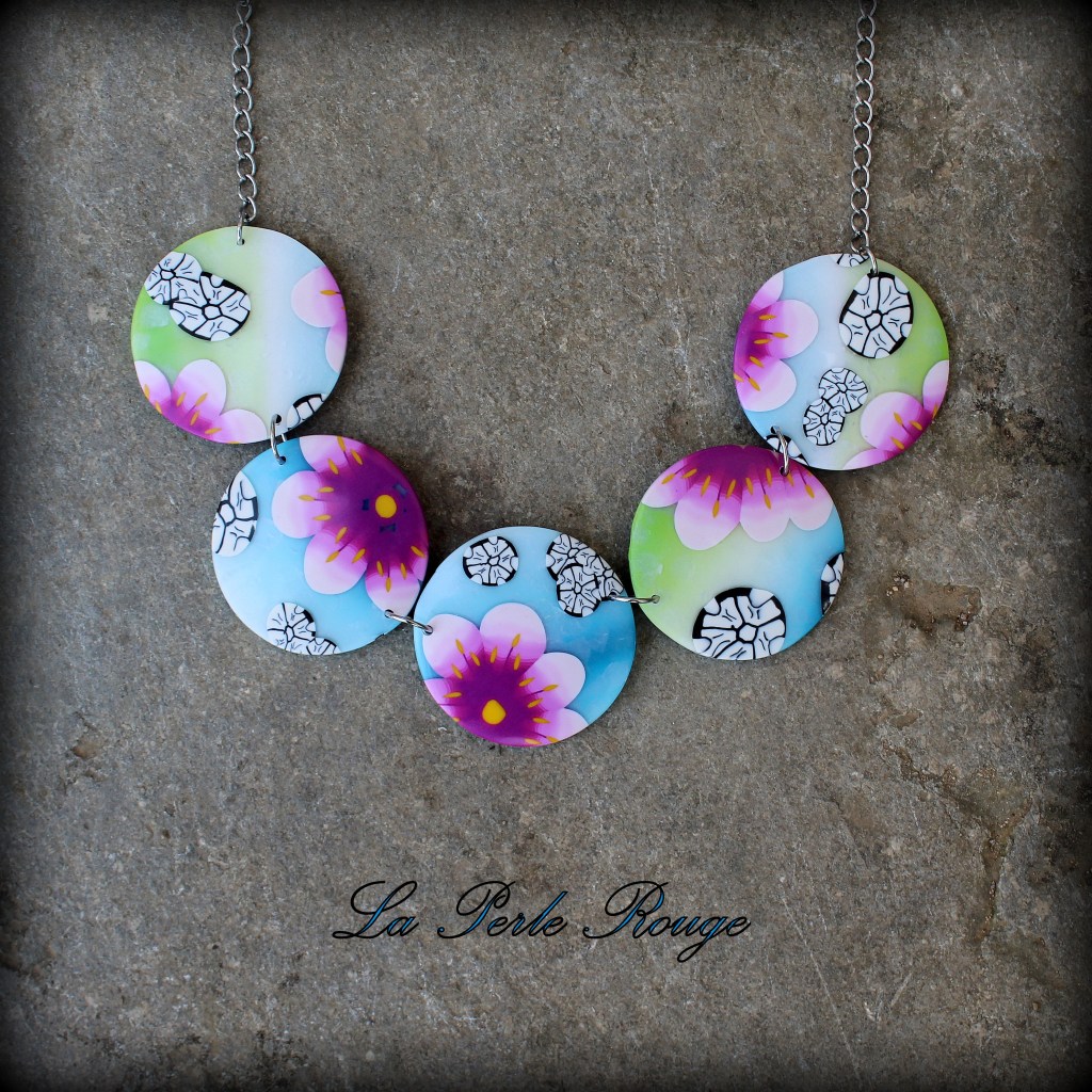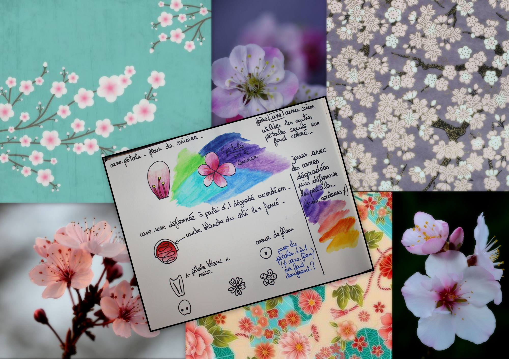 En ce qui me concerne, je me suis découverte un fabuleux pouvoir magique (?!?) SI SI, je vous assure ! Comment, vous ne me croyez pas ? Jugez vous-même : il y a une quinzaine de jours j’ai commencé à travailler sur un nouveau tutoriel vidéo. La boutique de créateurs que j’ai rejointe et dans laquelle et je vends mes pièces a choisi un thème autour duquel les artisans peuvent décider de travailler pour les prochaines semaines et le premier sujet de ce nouvel exercice est le Japon. Lasse de me geler les coudes dans cet humide hiver, j’ai décidé de m’inspirer des fleurs de cerisier (ah ben, c’est pas banal, ça, tu t’es creusé la tête au moins un moment pour trouver quelque chose d’aussi spécial, non ?). Ben oui, je sais, c’est un peu téléphoné… mais zut, quoi, une irrépréhensible envie de doux printemps coloré a eu raison de toute exploration originale et la simplicité de cette fleur reflétait tout à fait mon sentiment : un besoin de beauté sans audace. (C’est à quel moment que tu deviens magicienne ? – Attends, tu vas voir.)