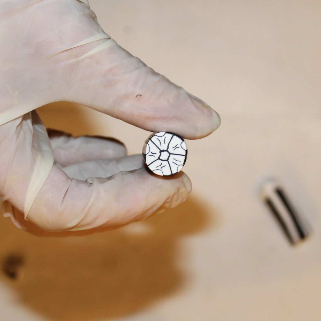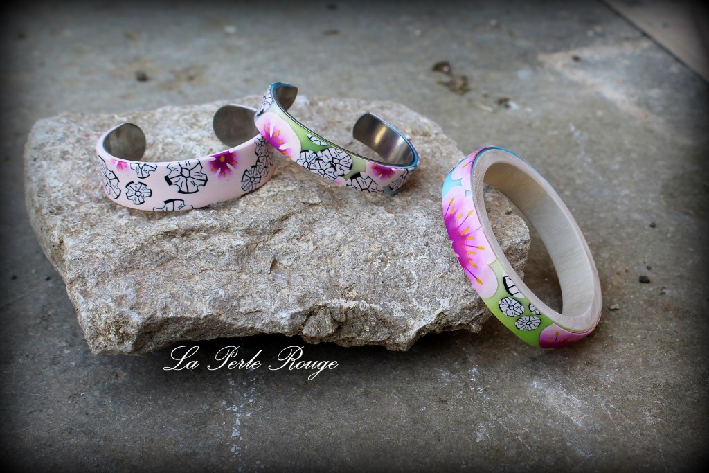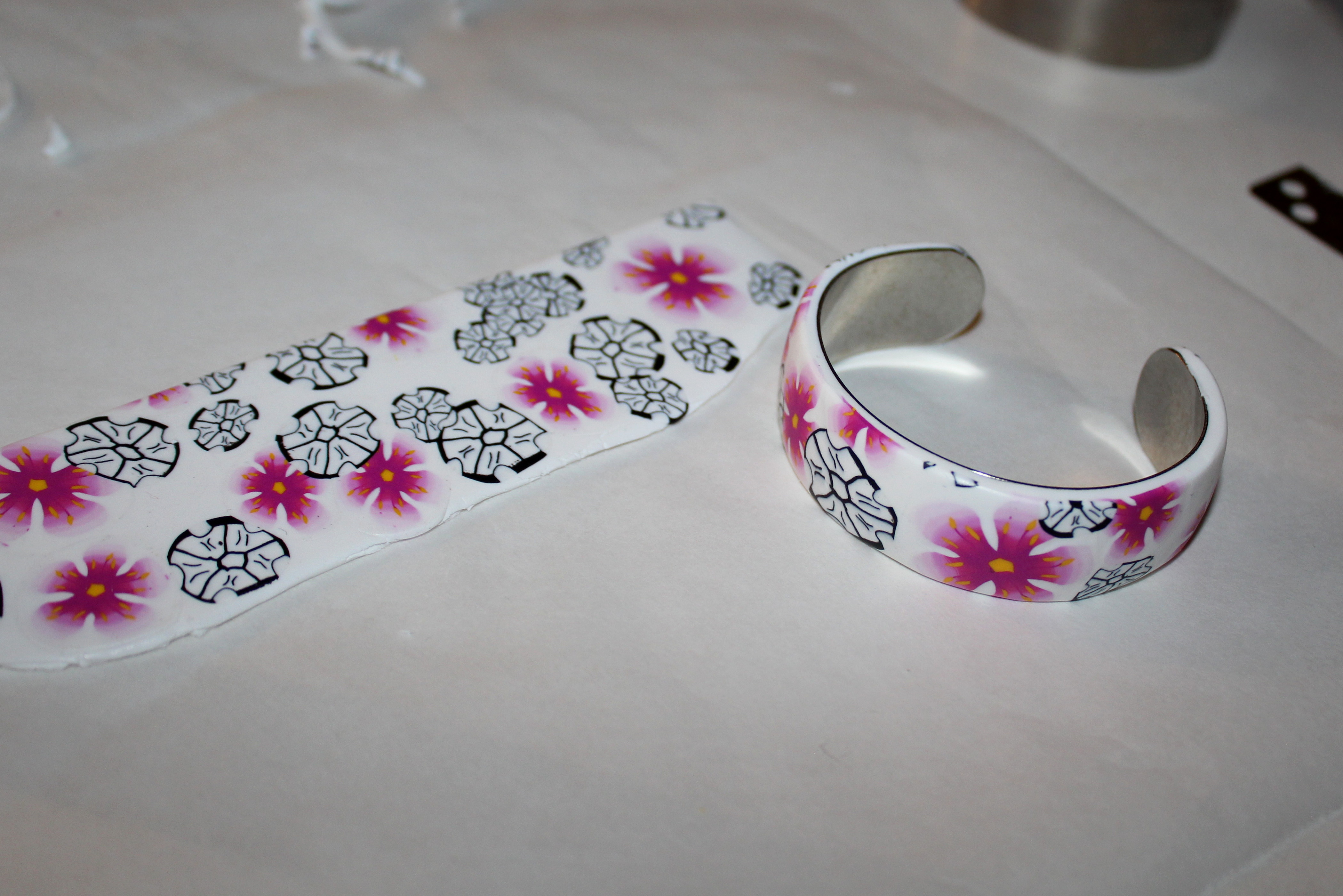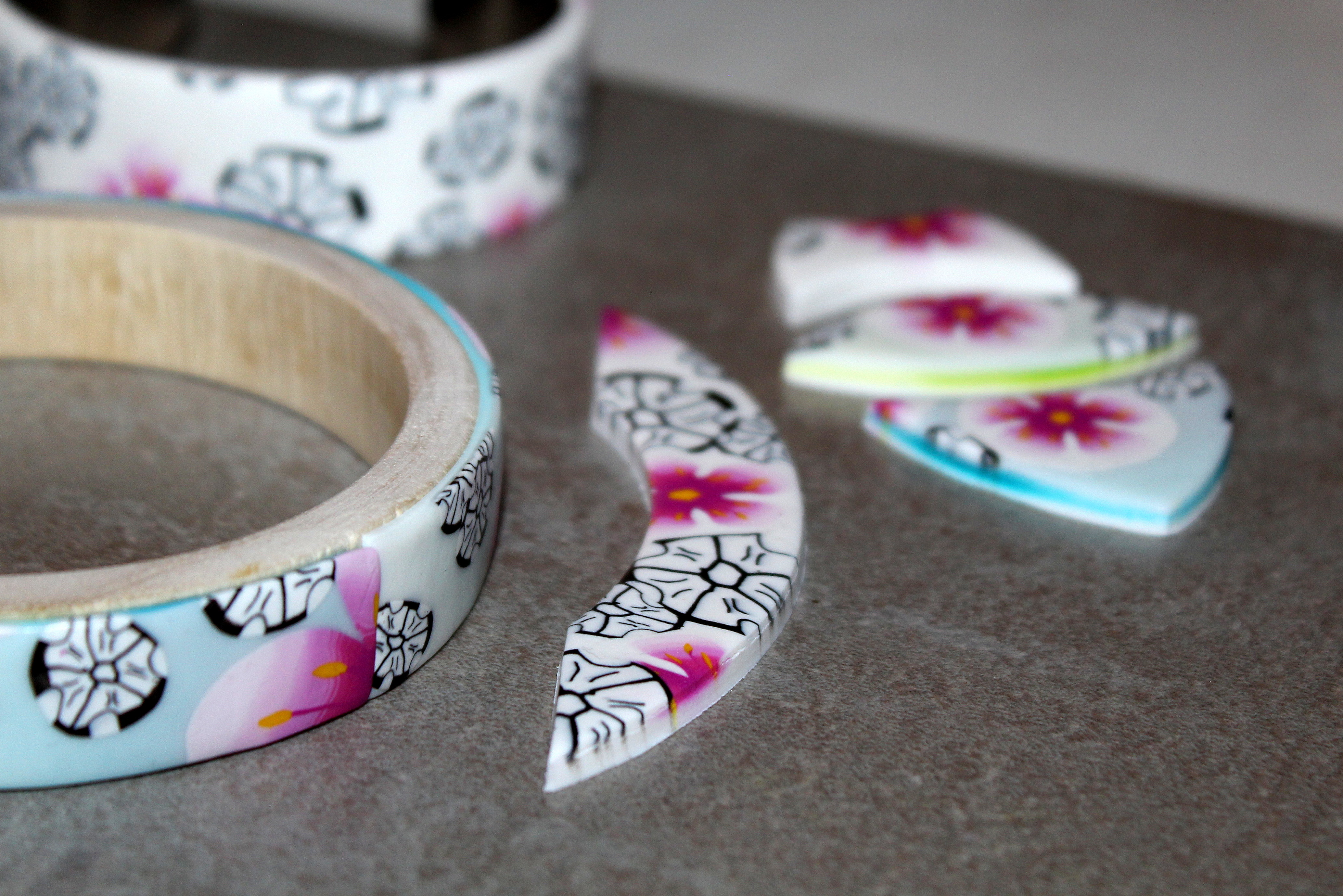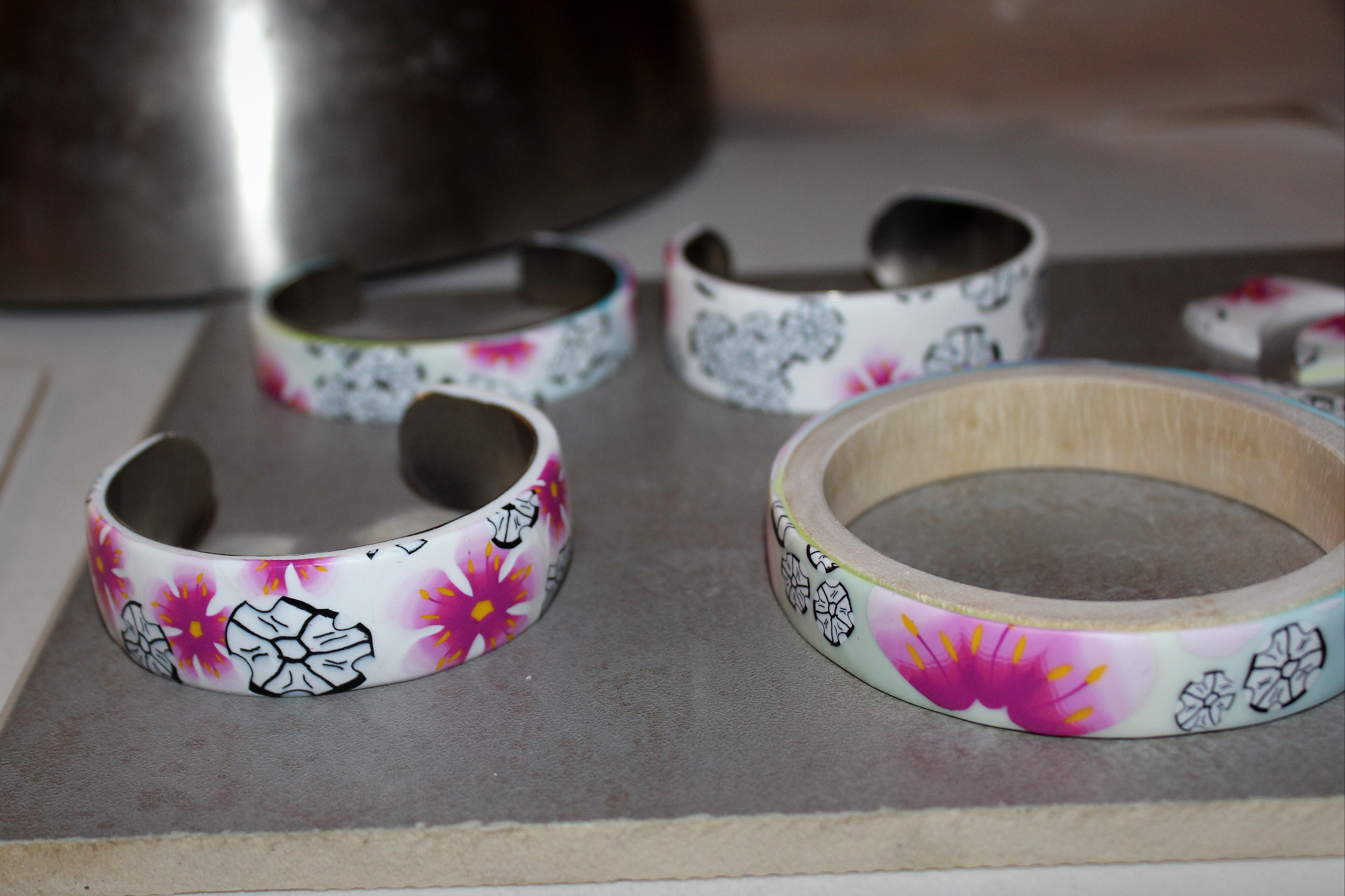 En ce qui concerne les bracelets sur support inox, détachez doucement la pâte cuite du métal et poncer le décor séparément. Vous recollerez ensuite les deux éléments ensemble à la glu.