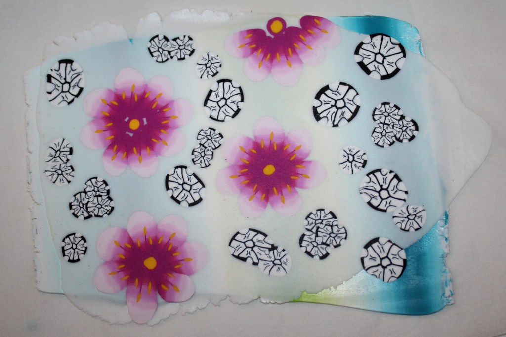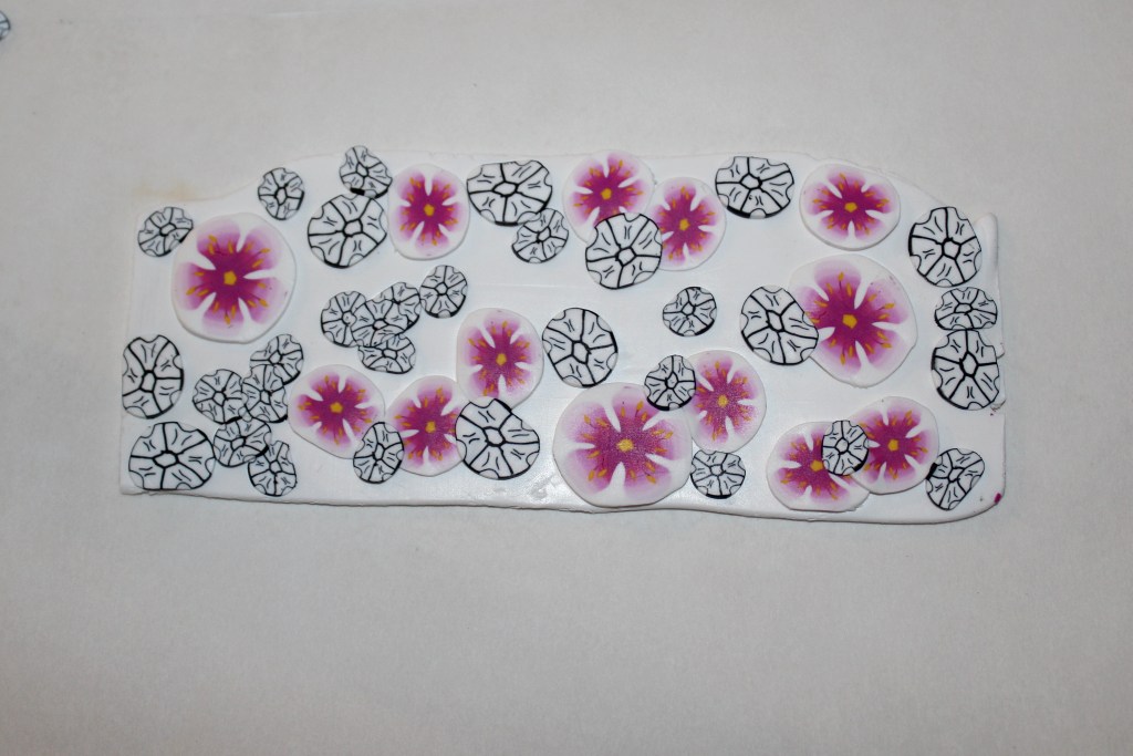 Pour éviter ça et avoir moins de blanc, j’ai travaillé avec un reste de la cane pétale, avant qu’elle ne se transforme en cane fleur et le résultat était ce que j’en attendais :