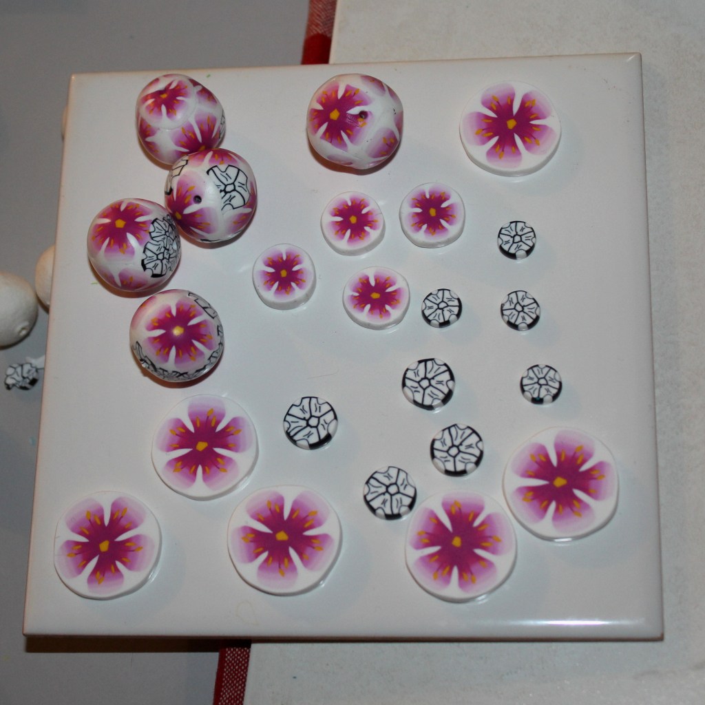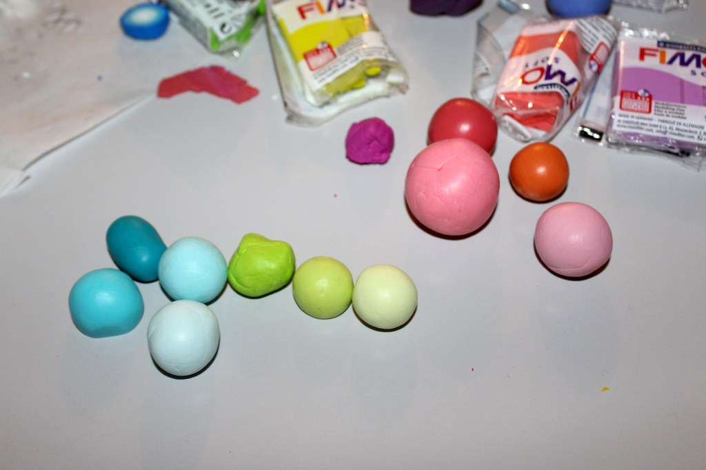 - Pâtes polymères (blanc, noir, rose, fushia, un peu de jaune et d’autres encore si l’envie vous prend !… vous verrez au cours du tuto)