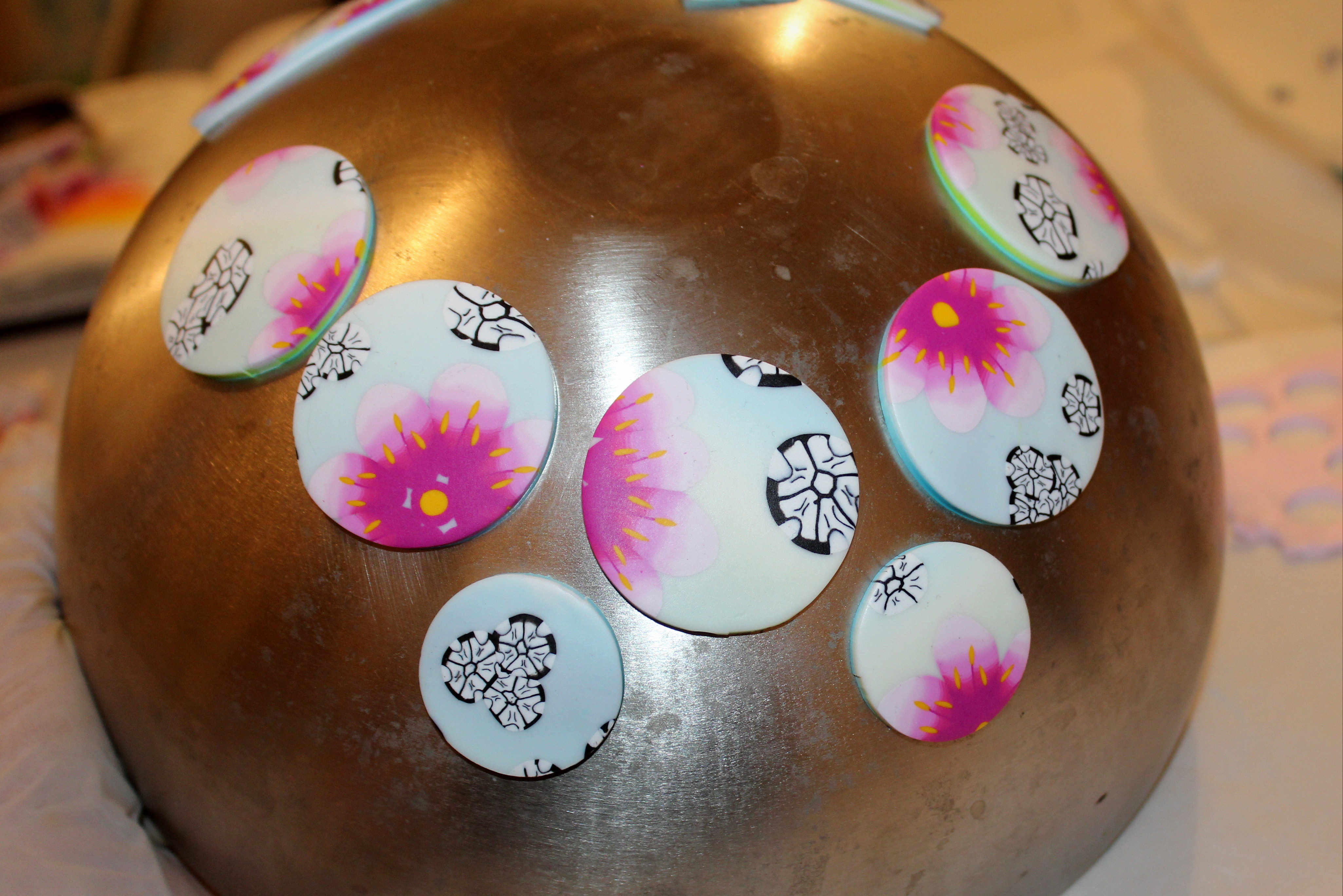 Après la cuisson, il y aura un travail de ponçage évident et celles et ceux qui l’ont déjà expérimenté le savent : on ne ponce pas un dégradé. Cet enchaînement de couleurs visibles est constitué d’une multitude de superpositions et le risque, en ponçant, est de mettre à jour des irrégularités de surface et donc de couleurs. Pour éviter cette prise de tête, il convient de protéger sa surface dégradée à l’aide d’une fine couche de pâte translucide (pâte qui sera parfaite à poncer!). Et quelle meilleure pâte translucide que la CERNIT ? (Et bah… aucune, en fait ? -Oui, la réponse était dans la question)