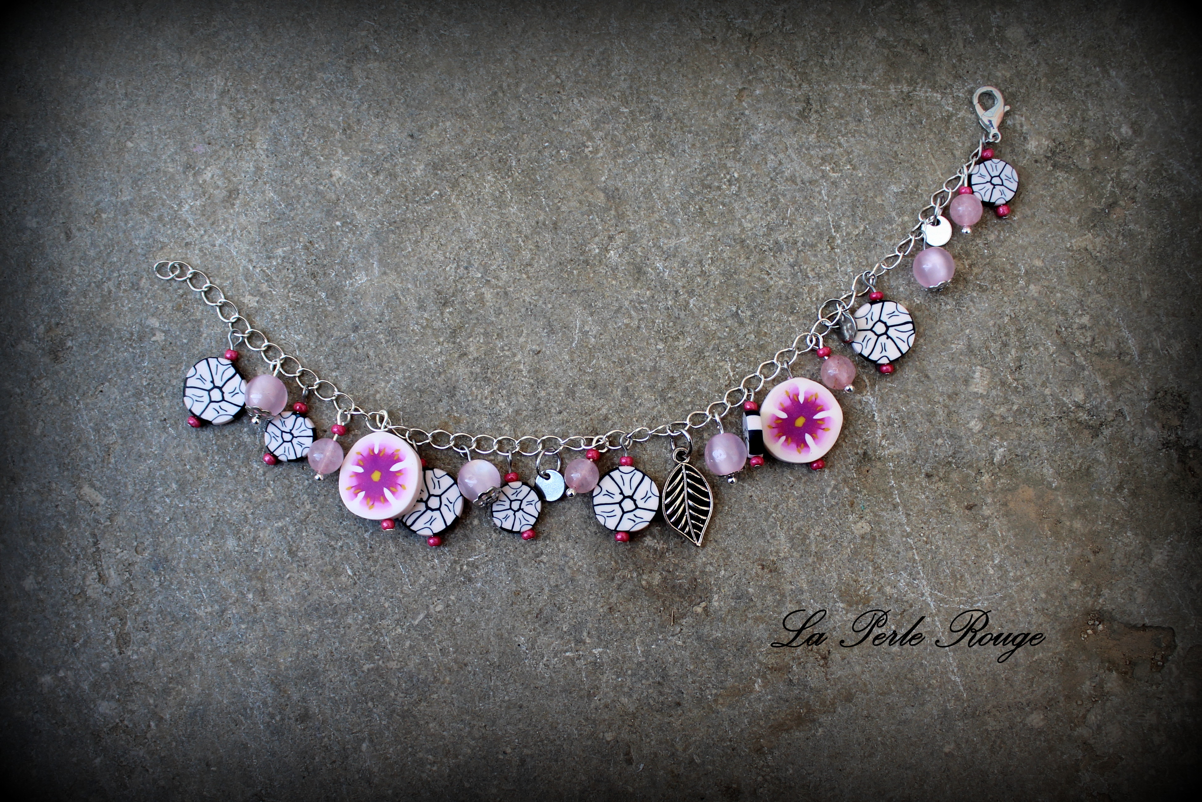 Le tour blanc de la première cane fleur rose risque de poser problème à l’ensemble de la composition puisque le motif de la fleur ne se détachera pas du fond comme pour le premier bracelet :
