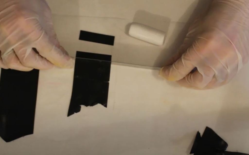 Cette pâte est assez géniale car vraiment transparente après cuisson et très réceptive au ponçage. En revanche, elle est plus capricieuse lors des manipulations crues. Elle n’apprécie pas être malaxée et malmenée. Elle en garde des bulles d’air et des sortes de fissures dont on se passerait bien ici. Soyez donc minutieux lorsque vous vous en servez et évitez les manipulations au maximum. Commencez à aplatir votre pâte au rouleau avant de passer dans la map et de réduire progressivement les cran jusqu’au réglage le plus fin (ici 1 pour mon imperia). Une fois que c’est fait, recouvrez délicatement votre plaque dégradée en essayant de coincer le moins de bulles d’air possible.