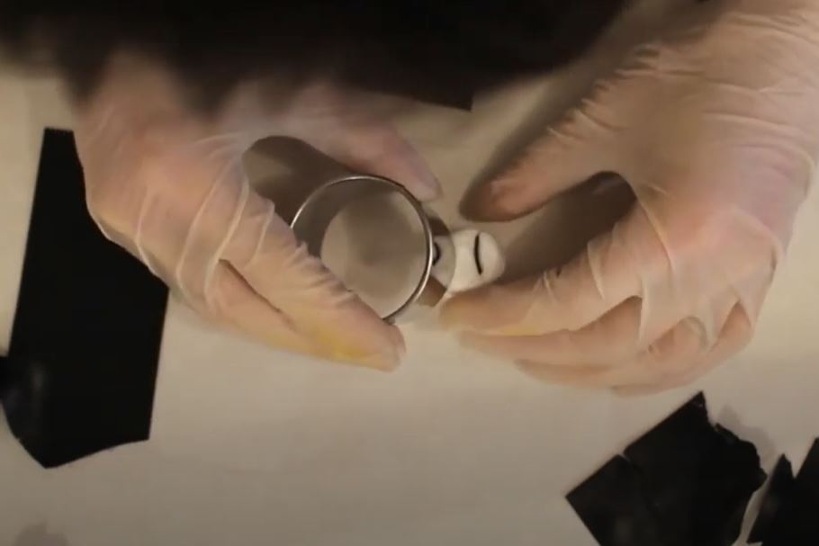 Maintenant, faites parler la magie du modelage à travers vos petits doigts musclés et déformez cet accordéon progressivement jusqu’à obtenir une cane à section presque ronde, c’est la base de notre cane « pétale » :