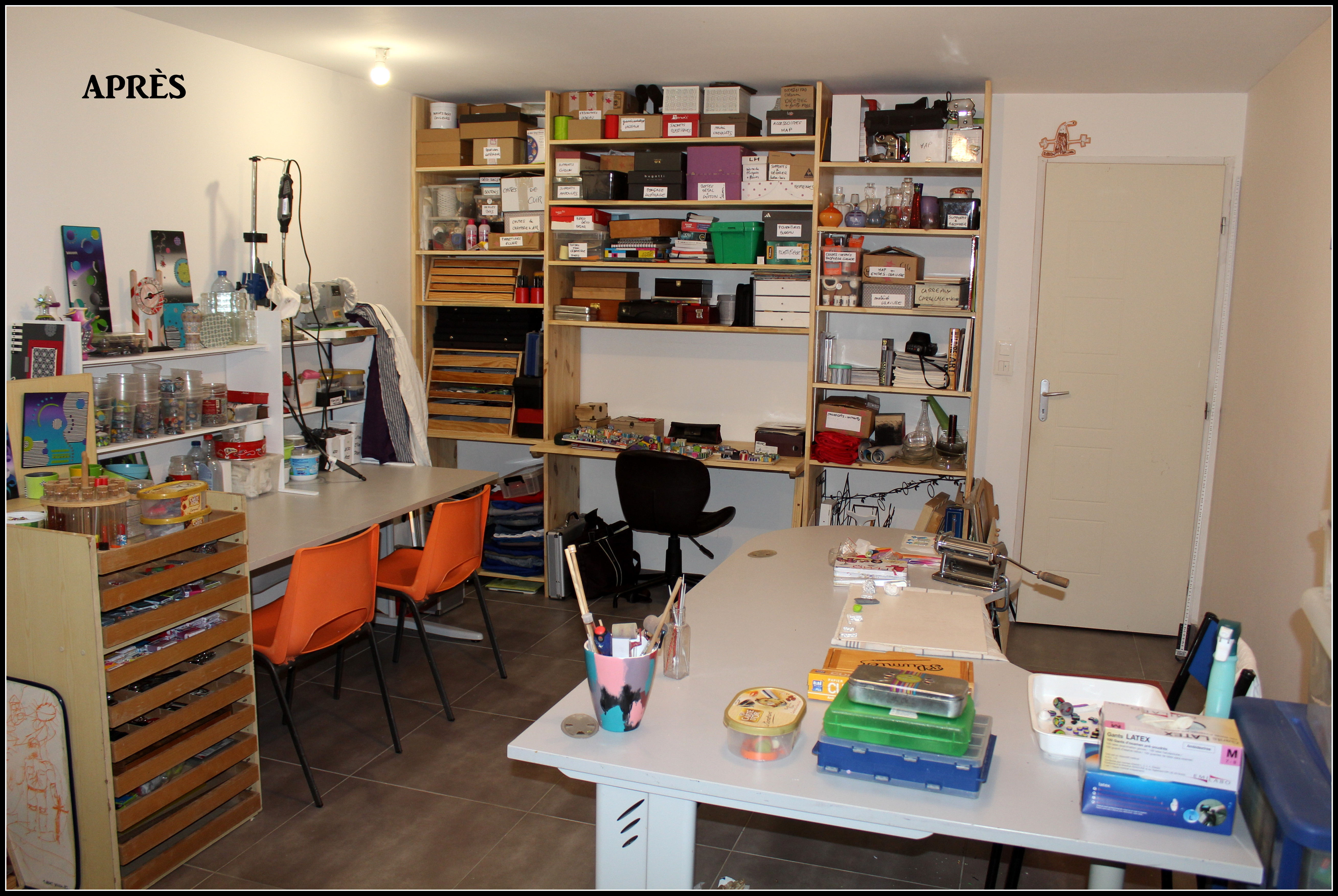 Moi j’ai du aller jusqu’à ne pas pouvoir ouvrir correctement la porte alors que mon atelier fait presque 25 m carrés !!! Et plus on attend, plus on entasse et plus ça nous décourage… Pour ne pas baisser les bras j’ai procédé mètre carré par mètre carré. Et en plus, j’ai retrouvé tellement de choses que j’avais perdues ou oubliées !!! Courage !