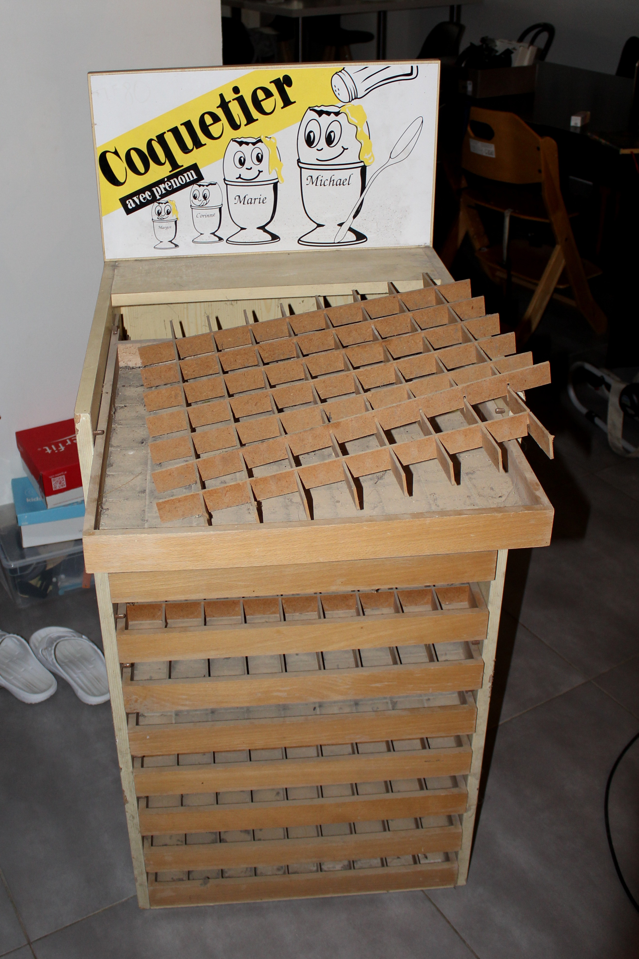 Ensuite j’ai récupéré un vieux meuble sur le bon coin qui était destiné à la vente de coquetiers personnalisés.