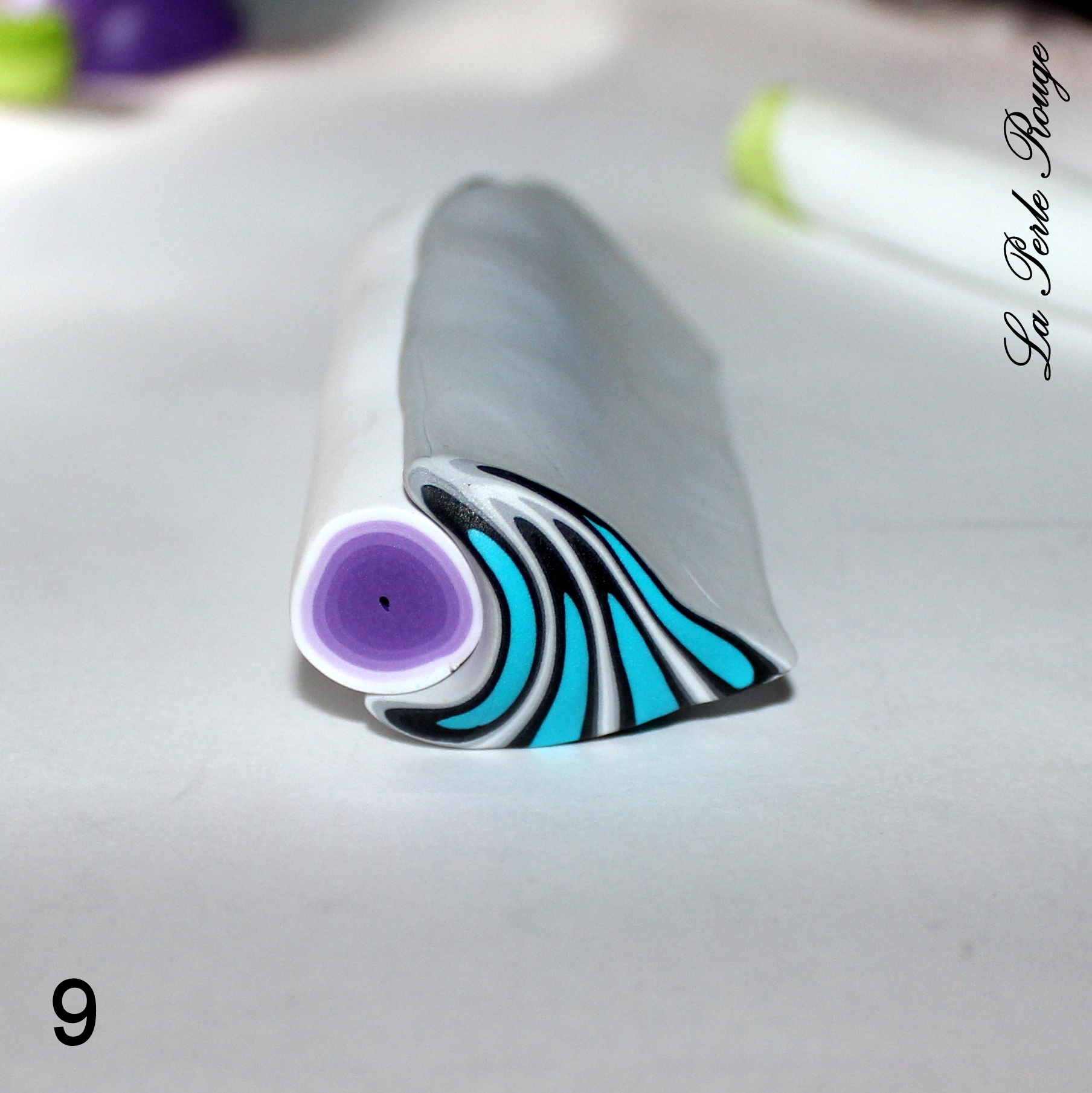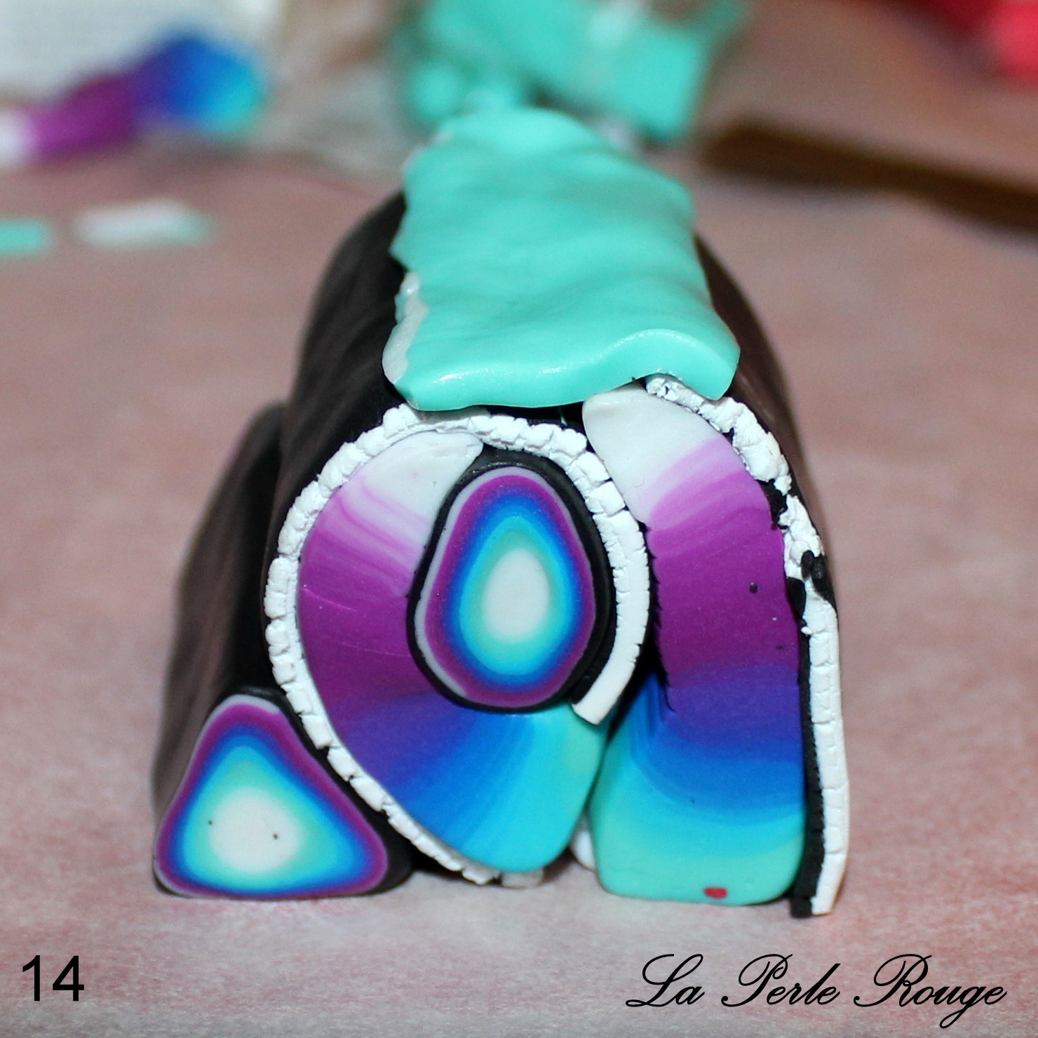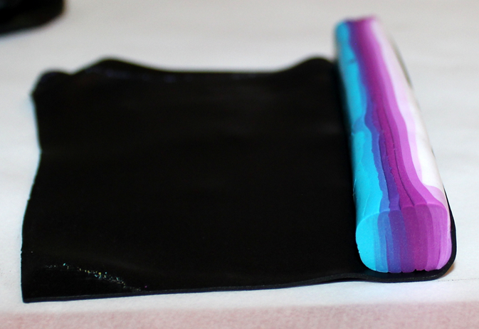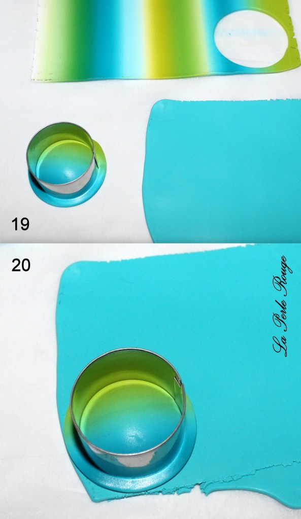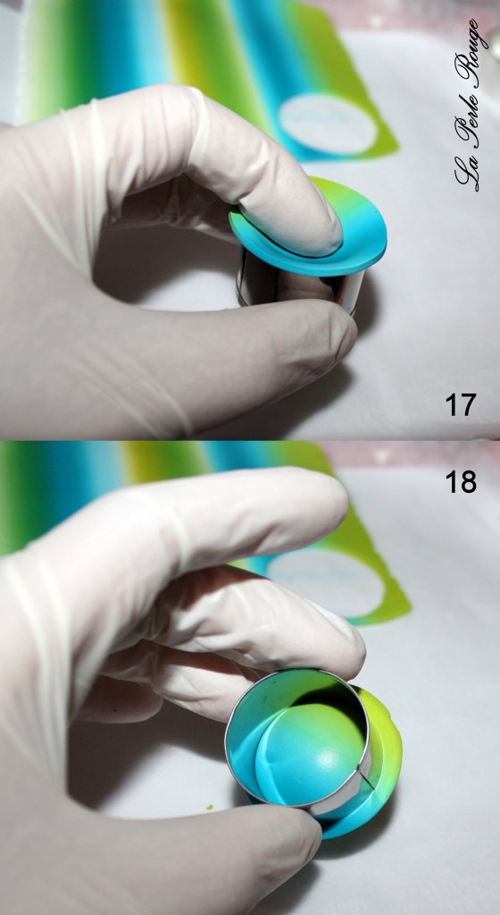 Après la cuisson, il y aura un travail de ponçage évident et celles et ceux qui l’ont déjà expérimenté le savent : on ne ponce pas un dégradé. Cet enchaînement de couleurs visibles est constitué d’une multitude de superpositions et le risque, en ponçant, est de mettre à jour des irrégularités de surface et donc de couleurs. Pour éviter cette prise de tête, il convient de protéger sa surface dégradée à l’aide d’une fine couche de pâte translucide (pâte qui sera parfaite à poncer!). Et quelle meilleure pâte translucide que la CERNIT ? (Et bah… aucune, en fait ? -Oui, la réponse était dans la question)