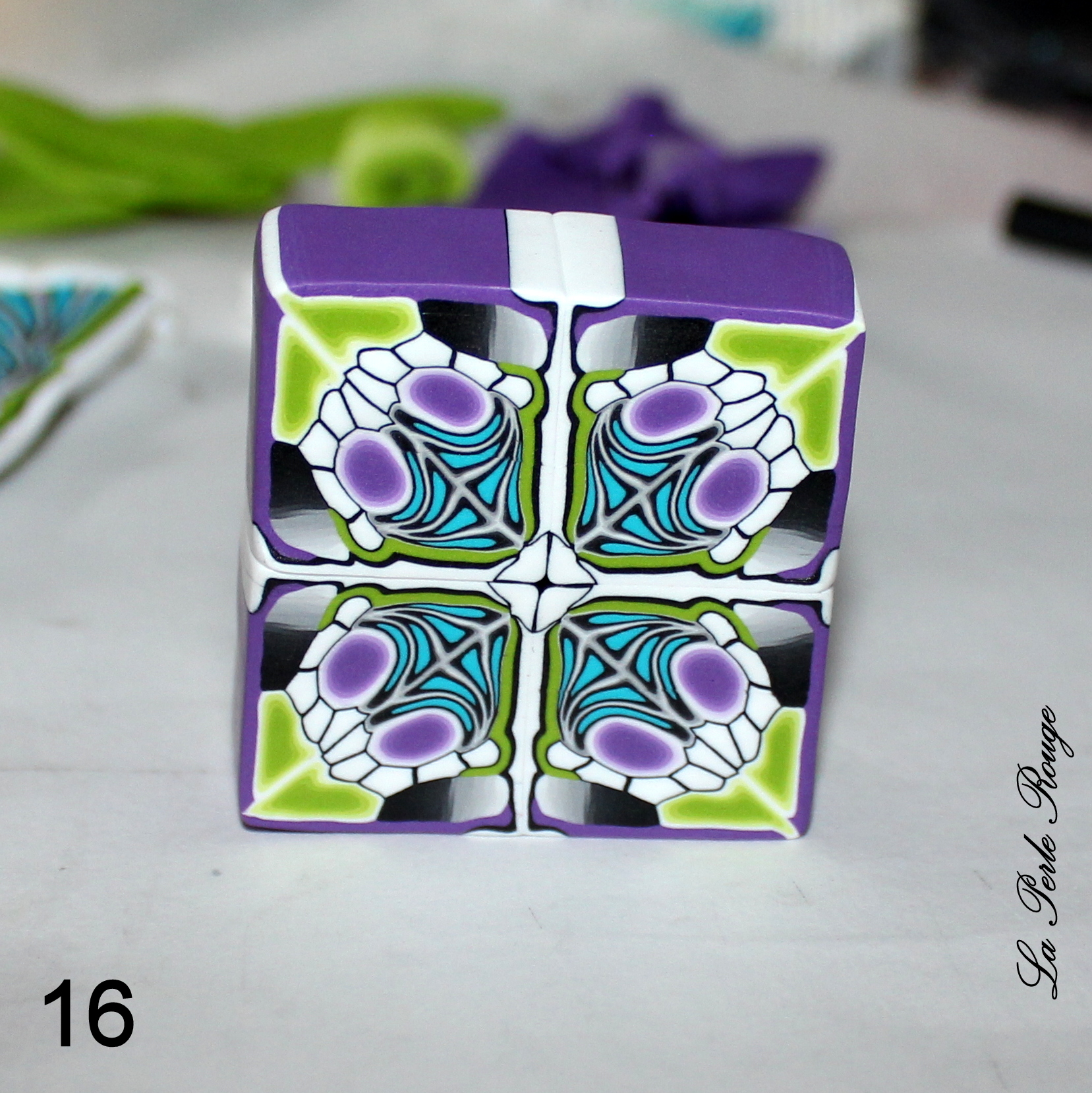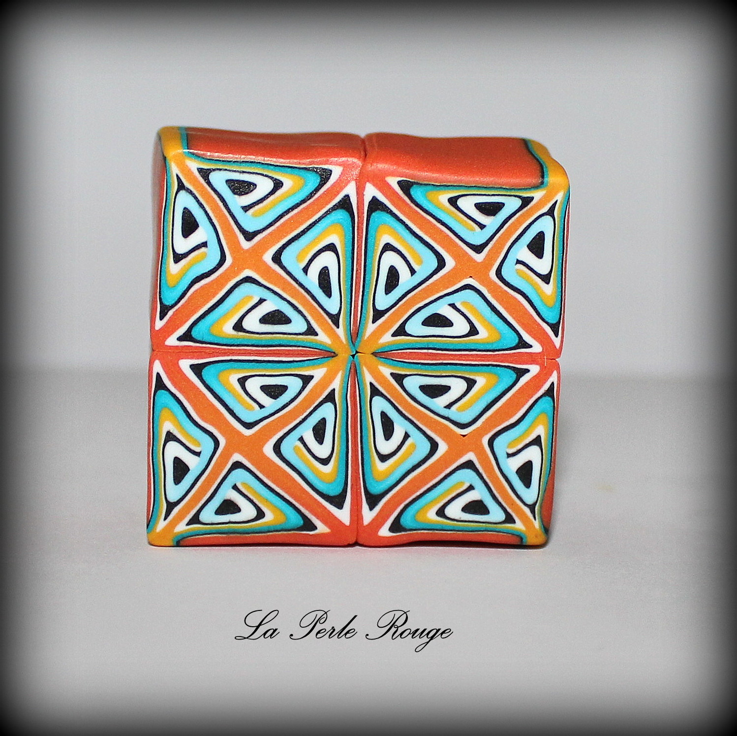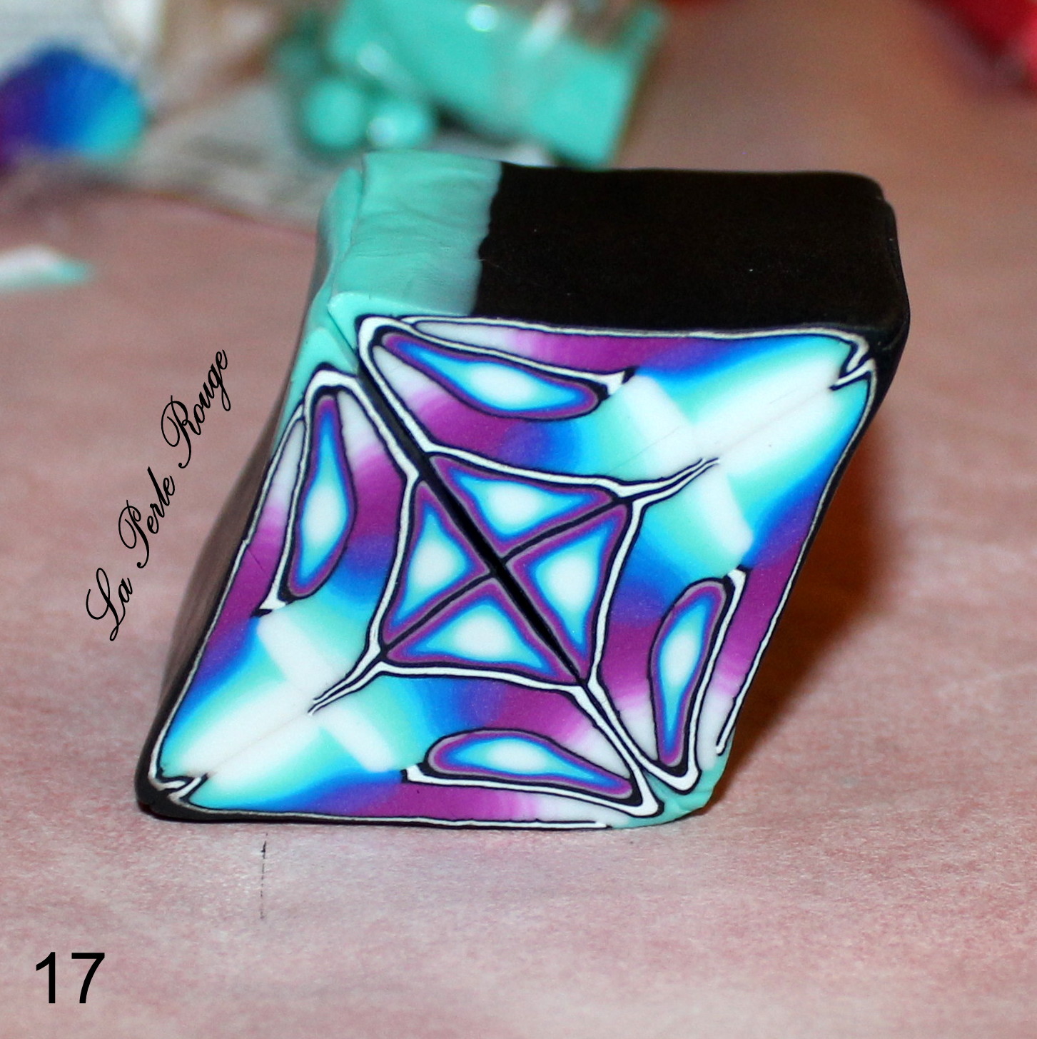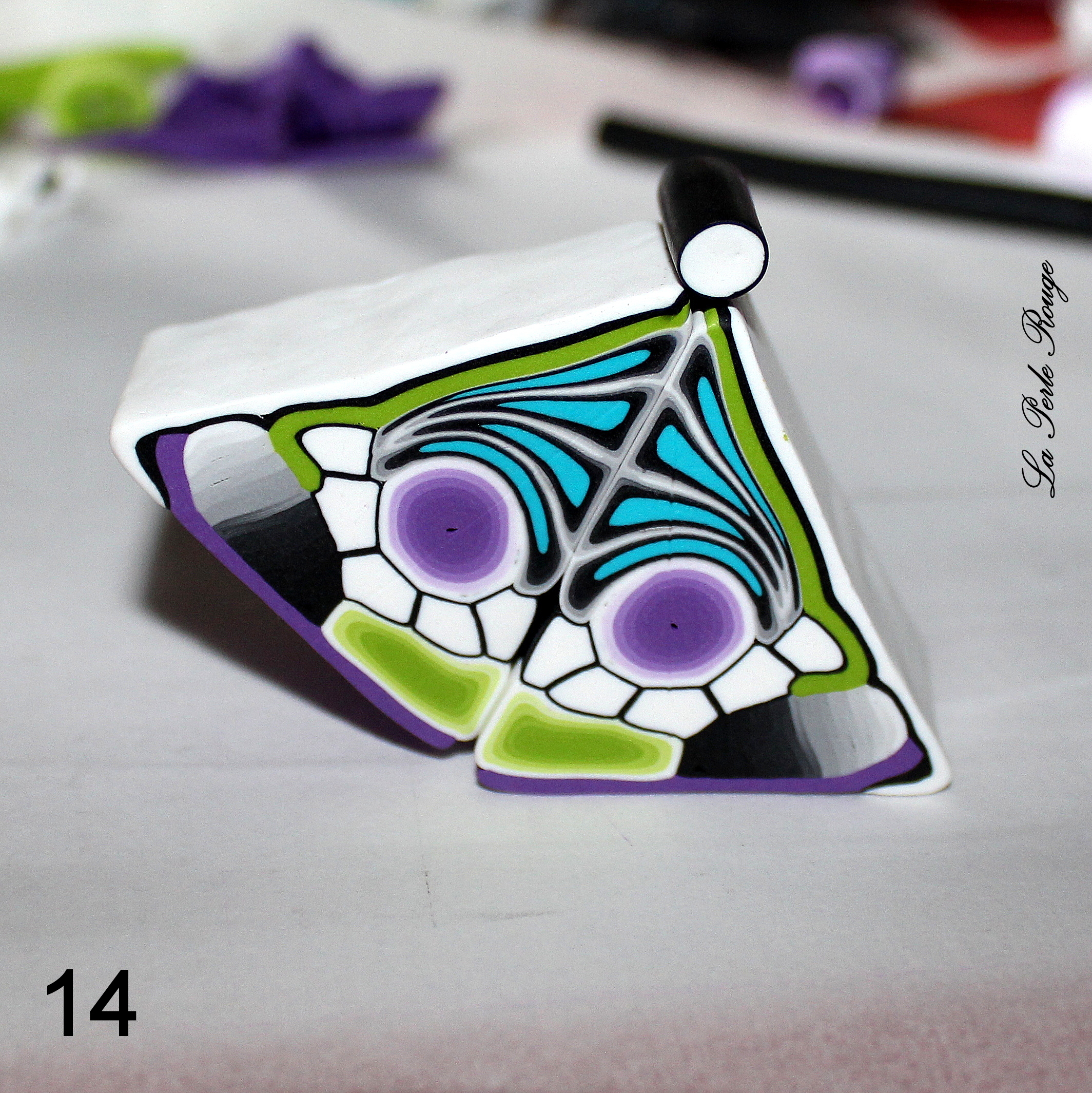 Après la cuisson, il y aura un travail de ponçage évident et celles et ceux qui l’ont déjà expérimenté le savent : on ne ponce pas un dégradé. Cet enchaînement de couleurs visibles est constitué d’une multitude de superpositions et le risque, en ponçant, est de mettre à jour des irrégularités de surface et donc de couleurs. Pour éviter cette prise de tête, il convient de protéger sa surface dégradée à l’aide d’une fine couche de pâte translucide (pâte qui sera parfaite à poncer!). Et quelle meilleure pâte translucide que la CERNIT ? (Et bah… aucune, en fait ? -Oui, la réponse était dans la question)