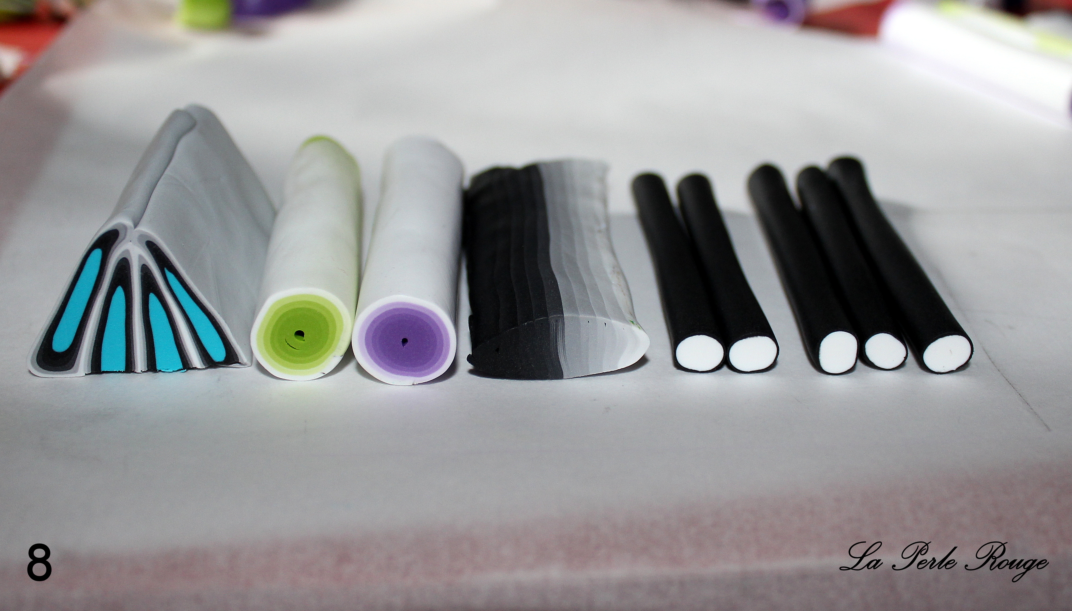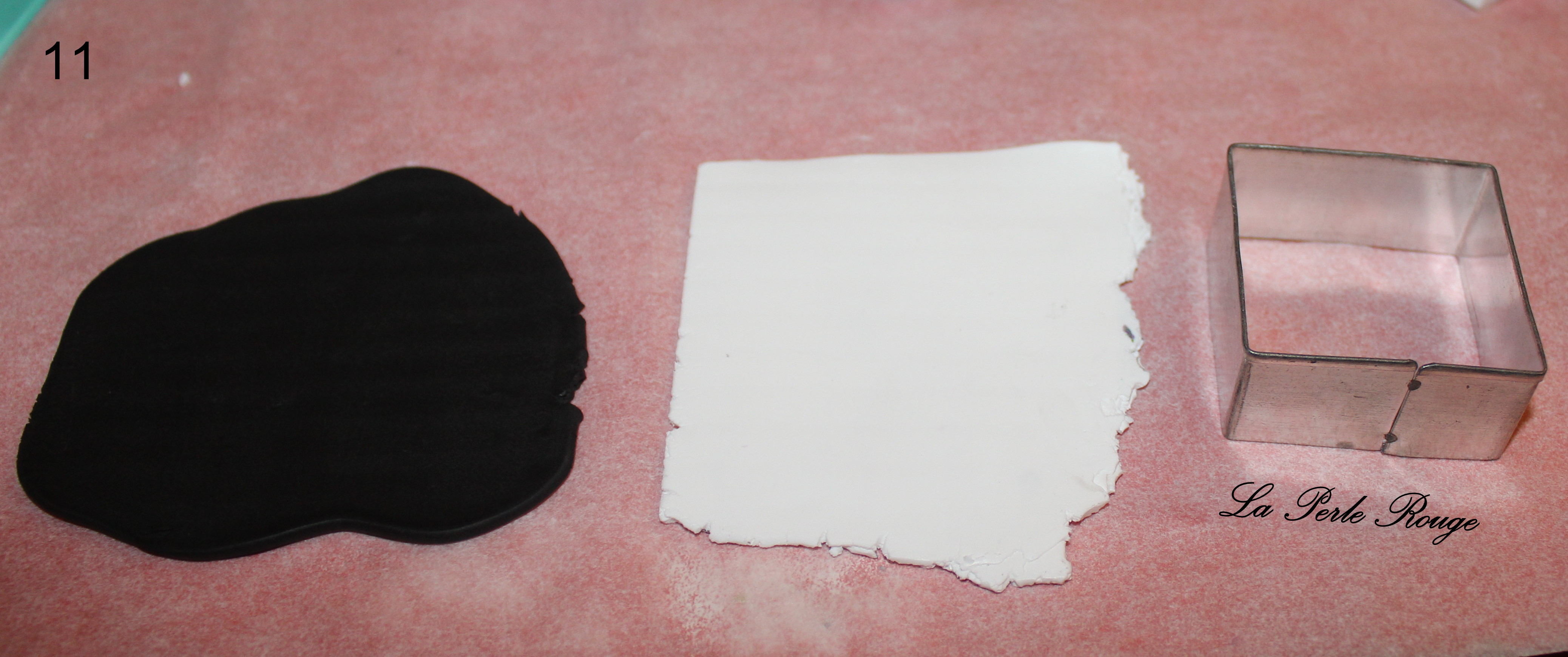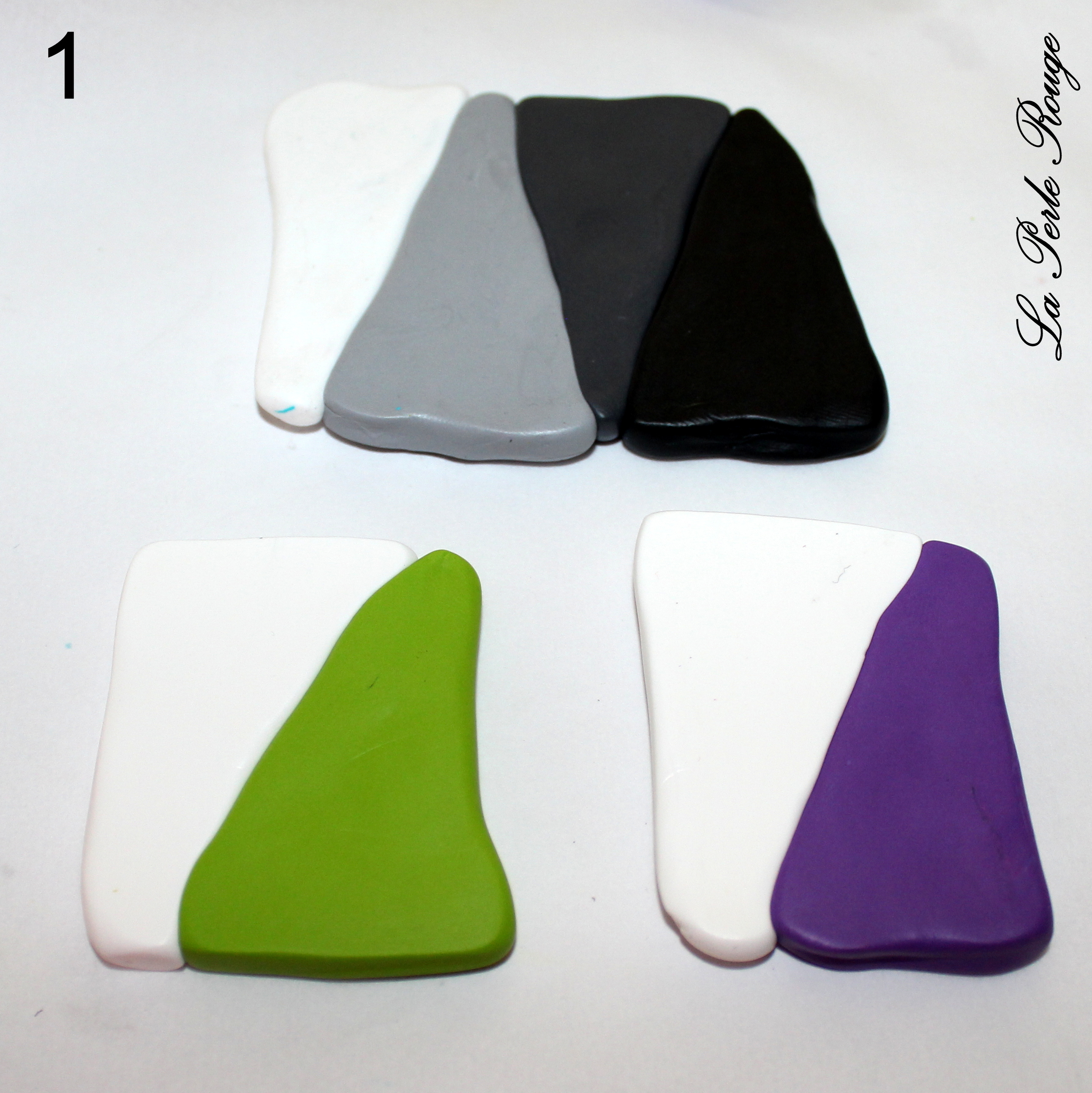 - Pâtes polymères (blanc, noir, rose, fushia, un peu de jaune et d’autres encore si l’envie vous prend !… vous verrez au cours du tuto)