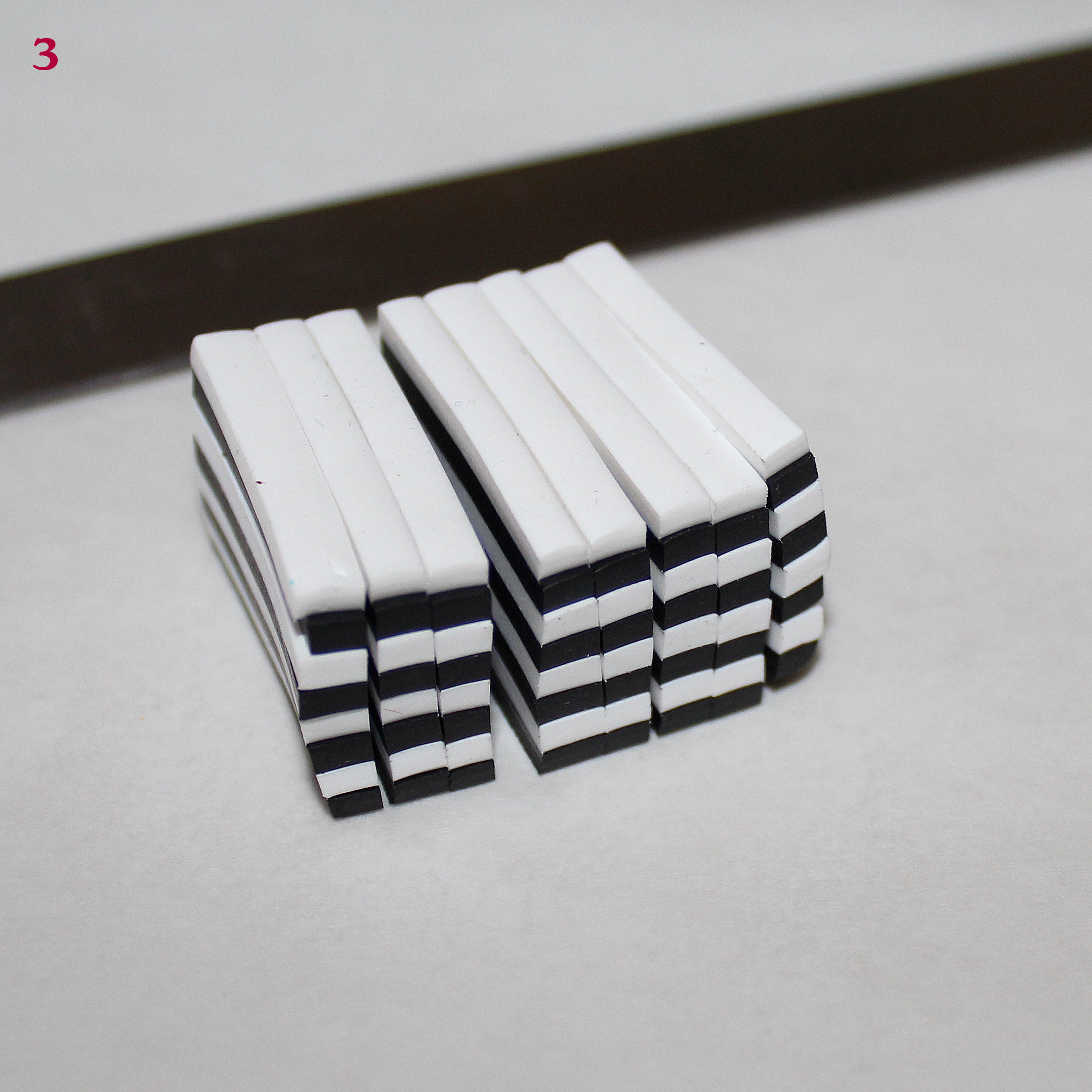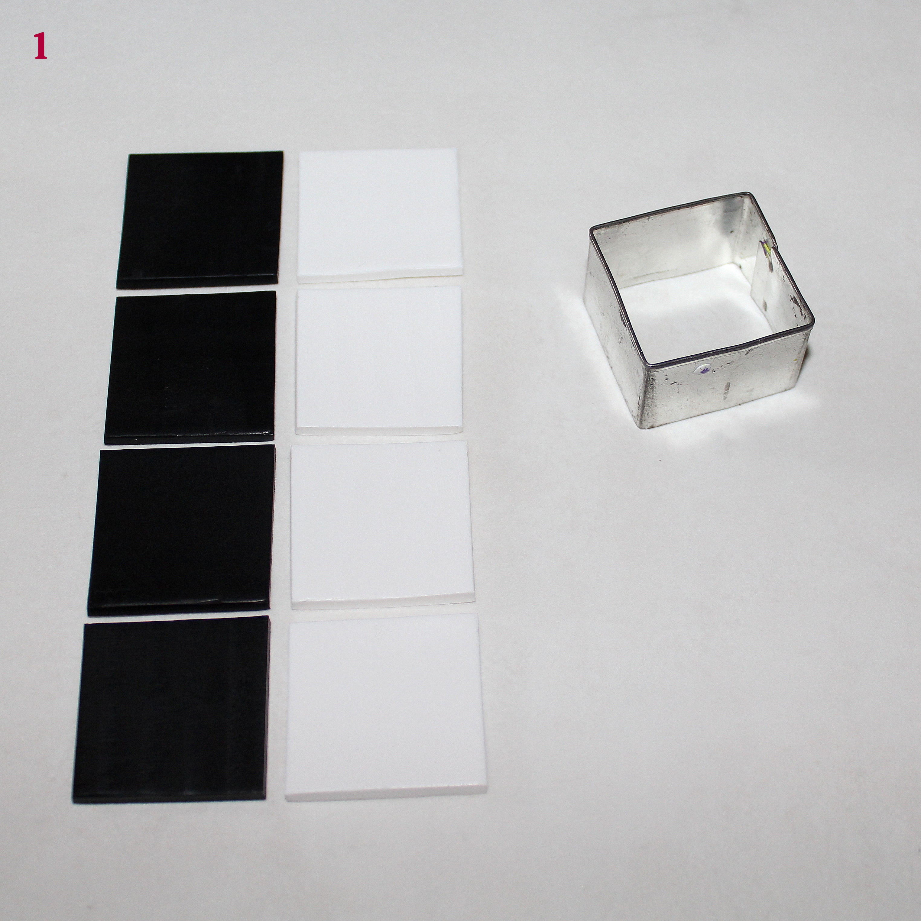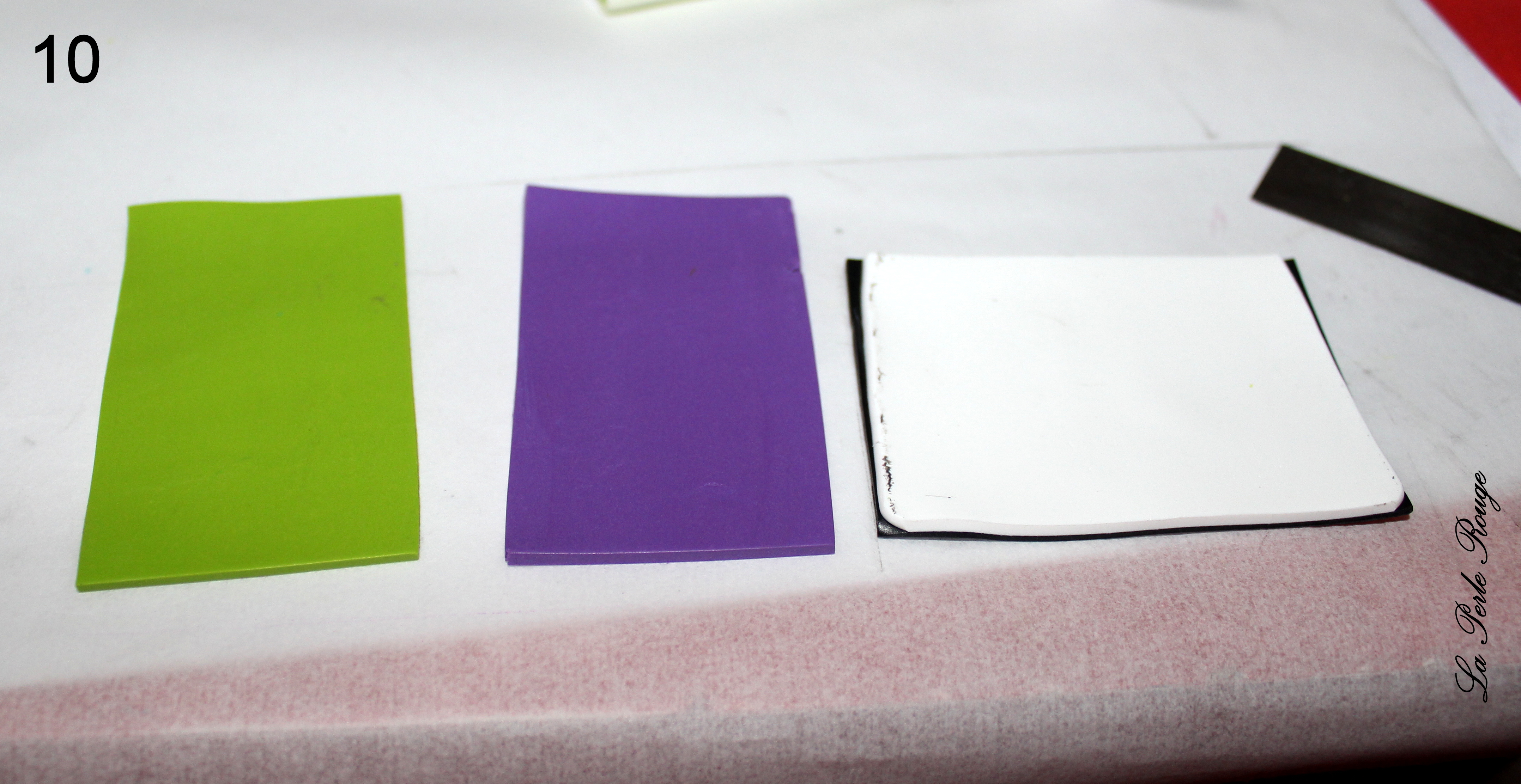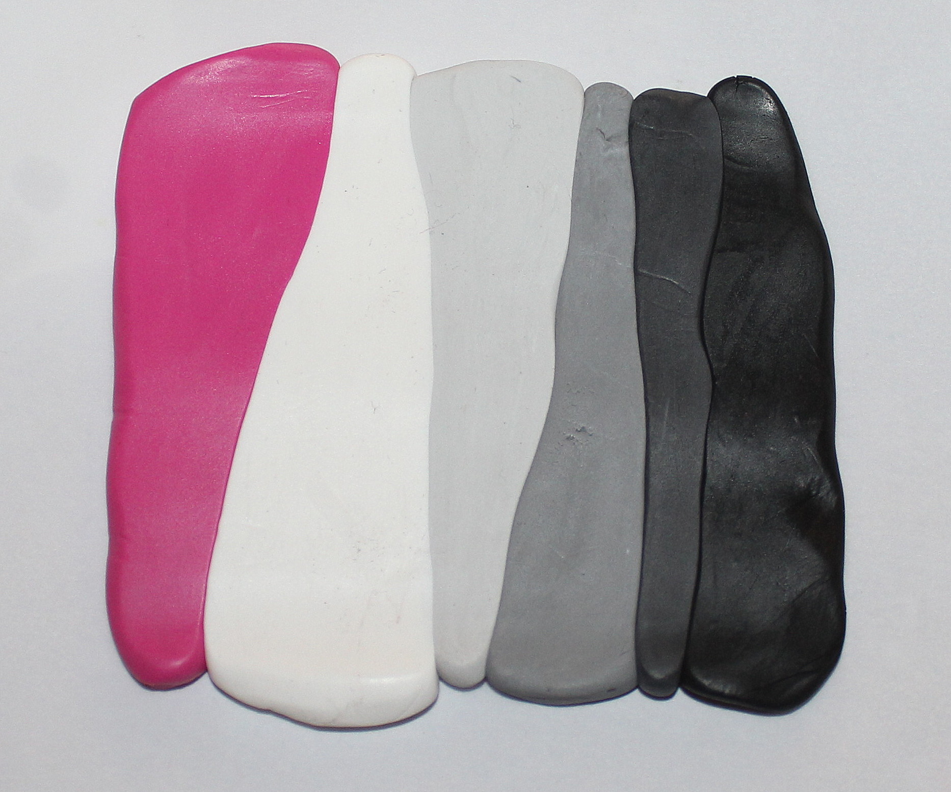 - Pâtes polymères (blanc, noir, rose, fushia, un peu de jaune et d’autres encore si l’envie vous prend !… vous verrez au cours du tuto)