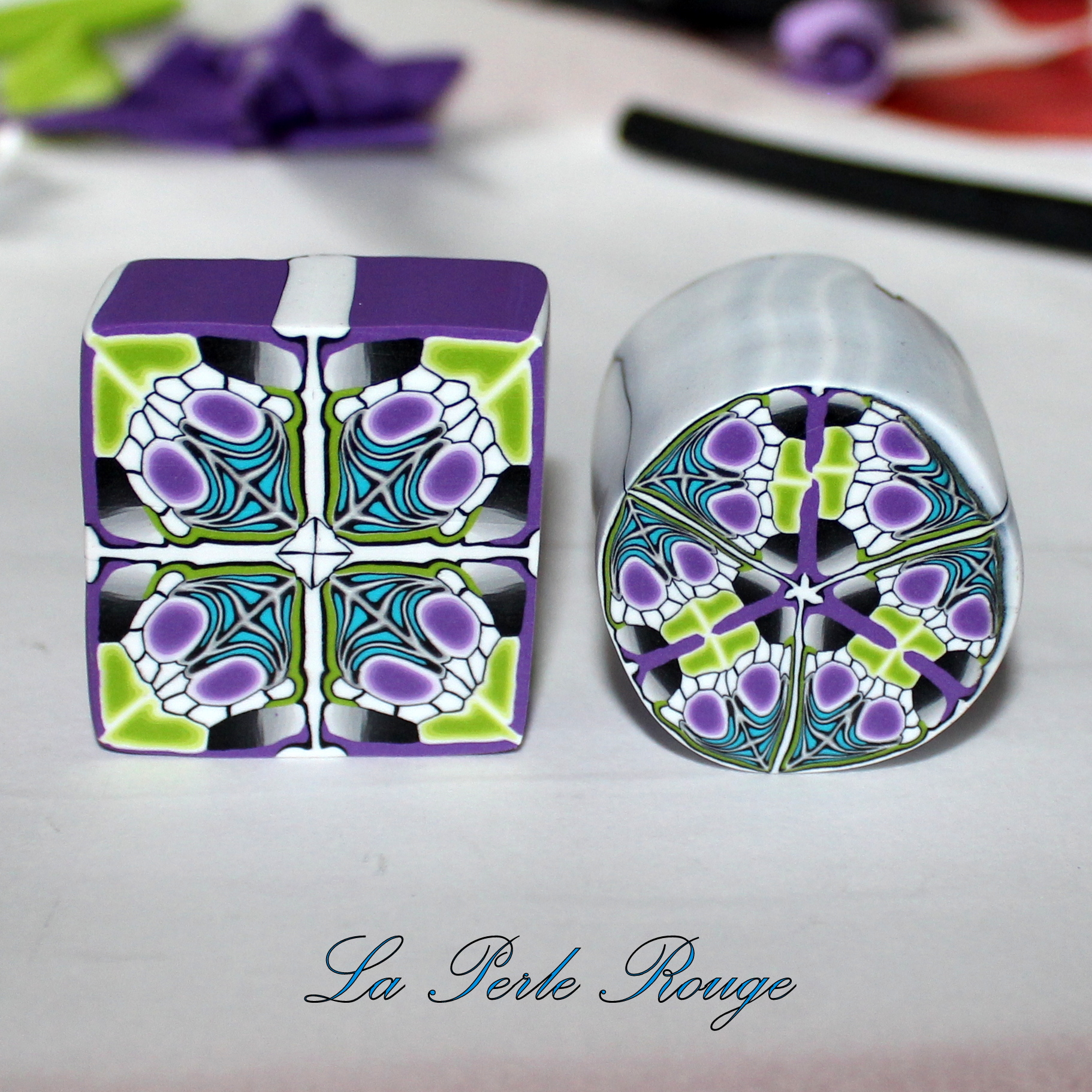 Le fond blanc rend très bien et étant donné qu’il est de la même couleur que l’extérieur de la cane fleur, l’ensemble est cohérent. Toutefois, une fois mes deux premiers bracelets prêts pour la cusson, j’ai eu envie d’y ajouter de la couleur.