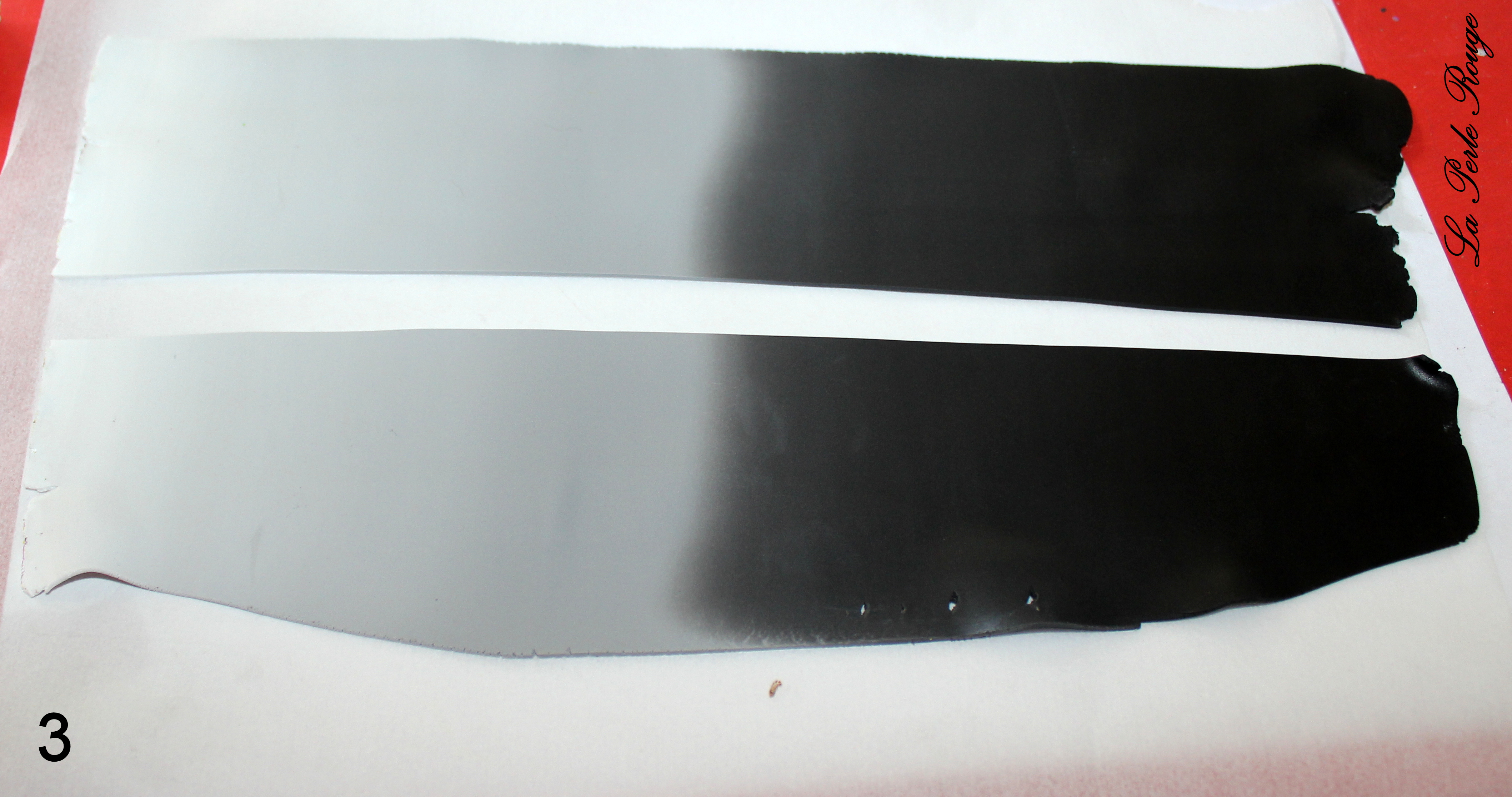 Réduisez légèrement, histoire de bien souder les éléments entre eux et préparez une fine bande blanche afin de venir masquer les dernières parties roses encore visibles.