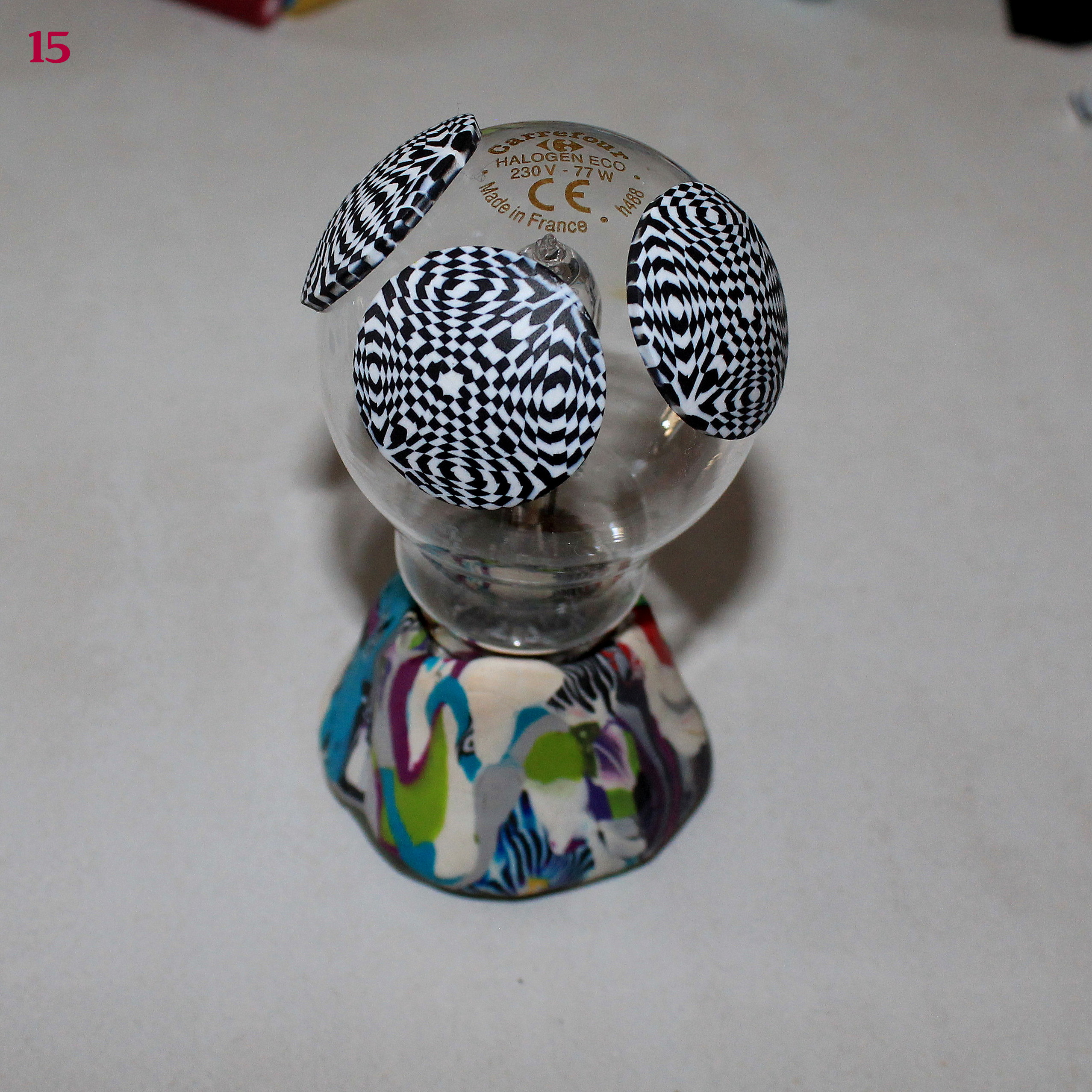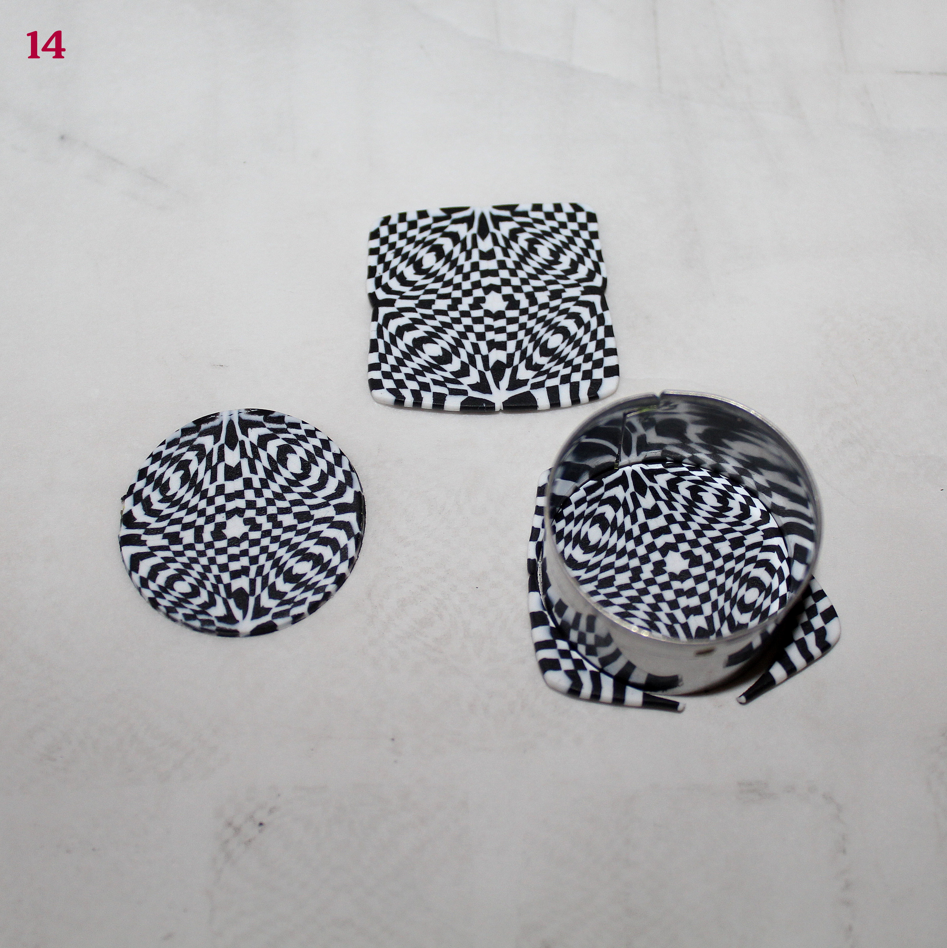 En ce qui concerne les bracelets sur support inox, détachez doucement la pâte cuite du métal et poncer le décor séparément. Vous recollerez ensuite les deux éléments ensemble à la glu.