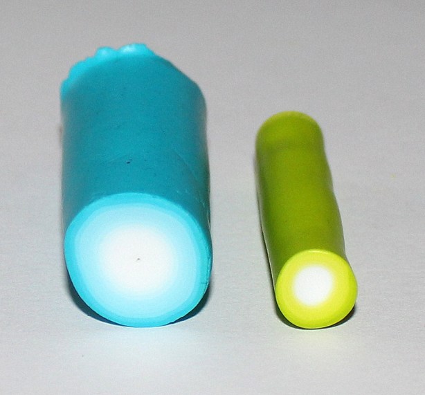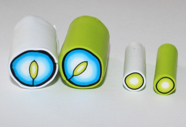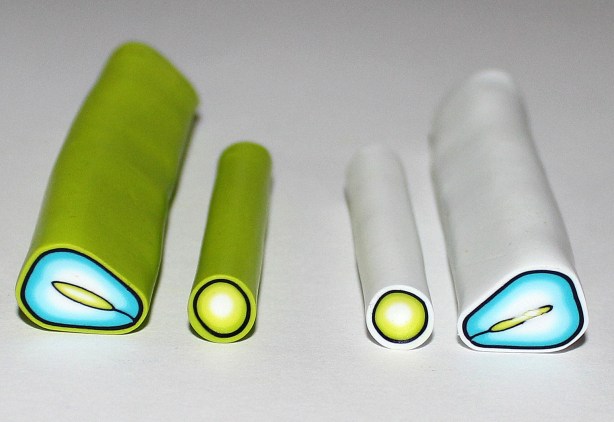 Maintenant, faites parler la magie du modelage à travers vos petits doigts musclés et déformez cet accordéon progressivement jusqu’à obtenir une cane à section presque ronde, c’est la base de notre cane « pétale » :