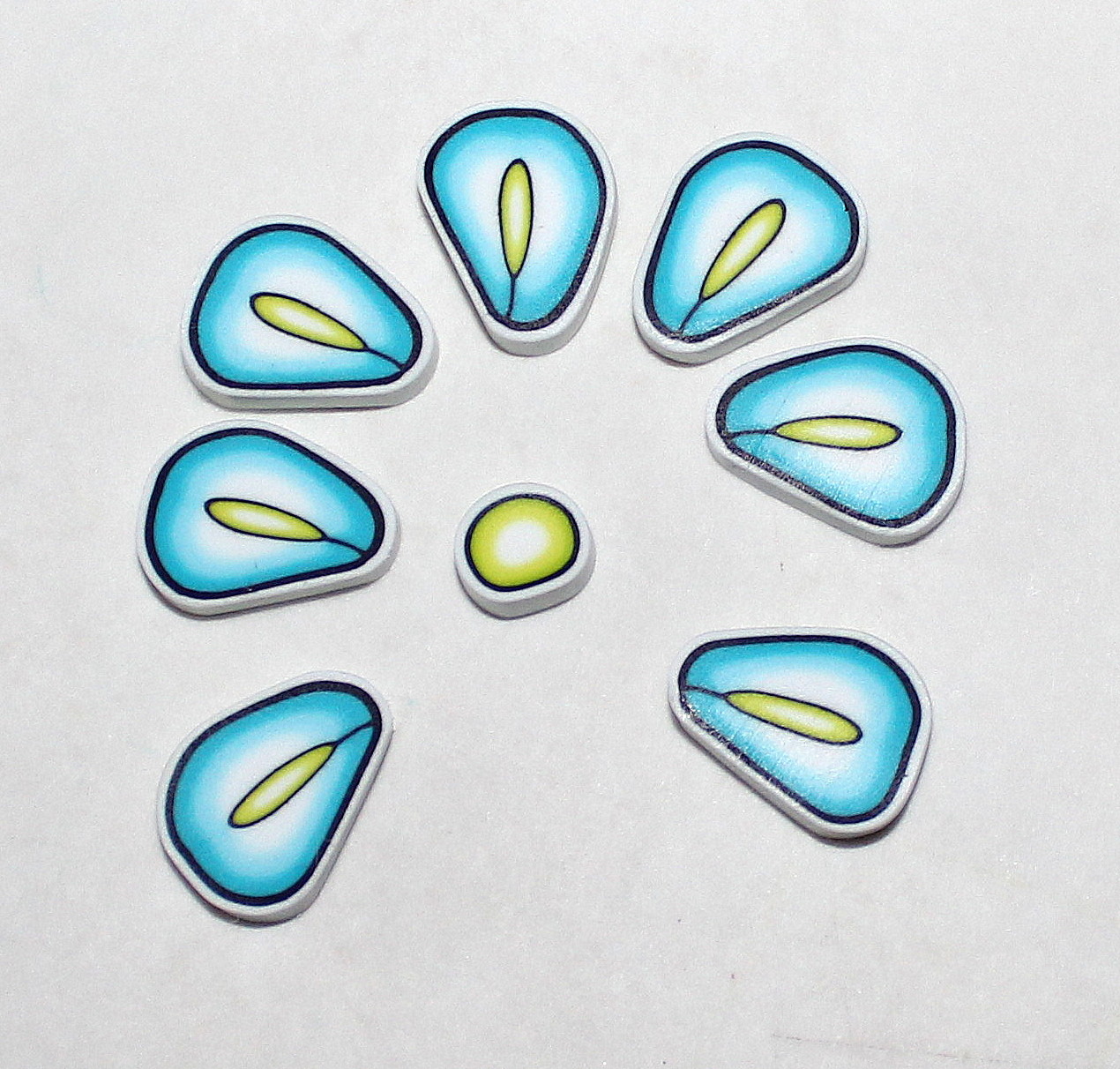 Il est à présent temps de monter votre cane fleur en alternant un tronçon « pétale » et un tronçons prisme blanc autour de la mini cane cible centrale :