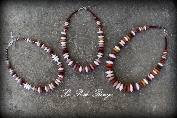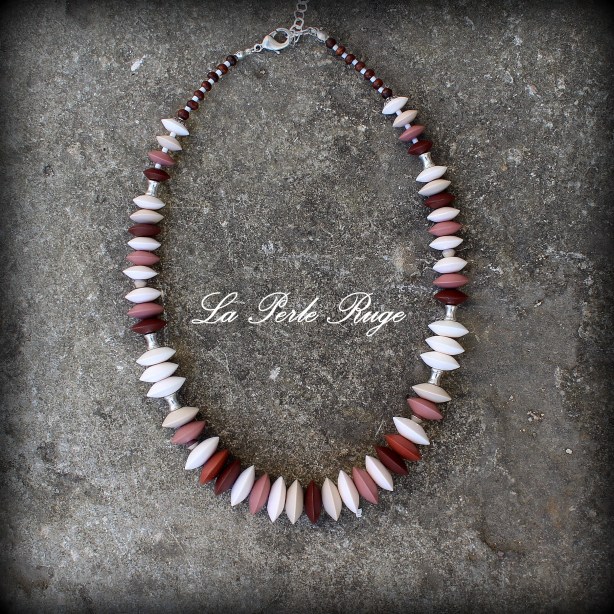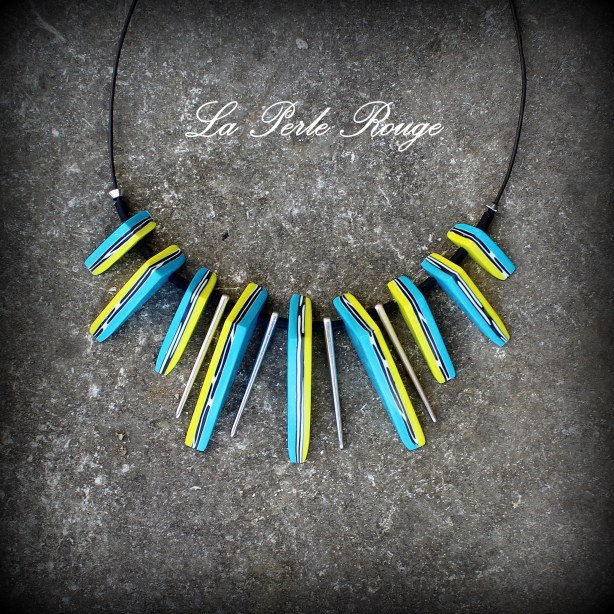 Et comme à chaque fois, à présent, j’utilise mes chutes afin de fabriquer les perles rondes d’un collier que j’appelle sans originalité aucune (mais en pertinence totale, et c’est ce qui me plait) : un collier de chutes !